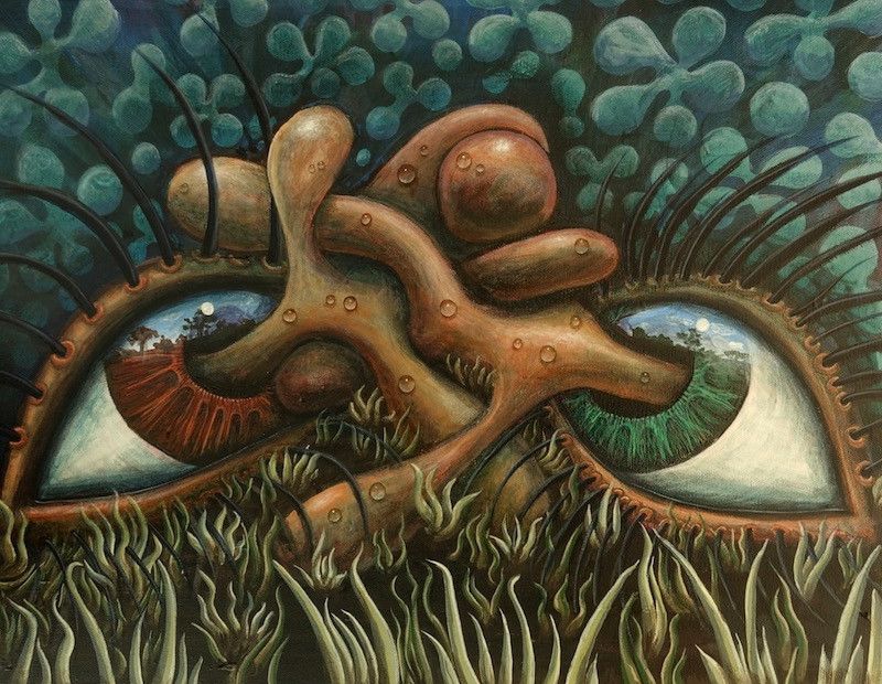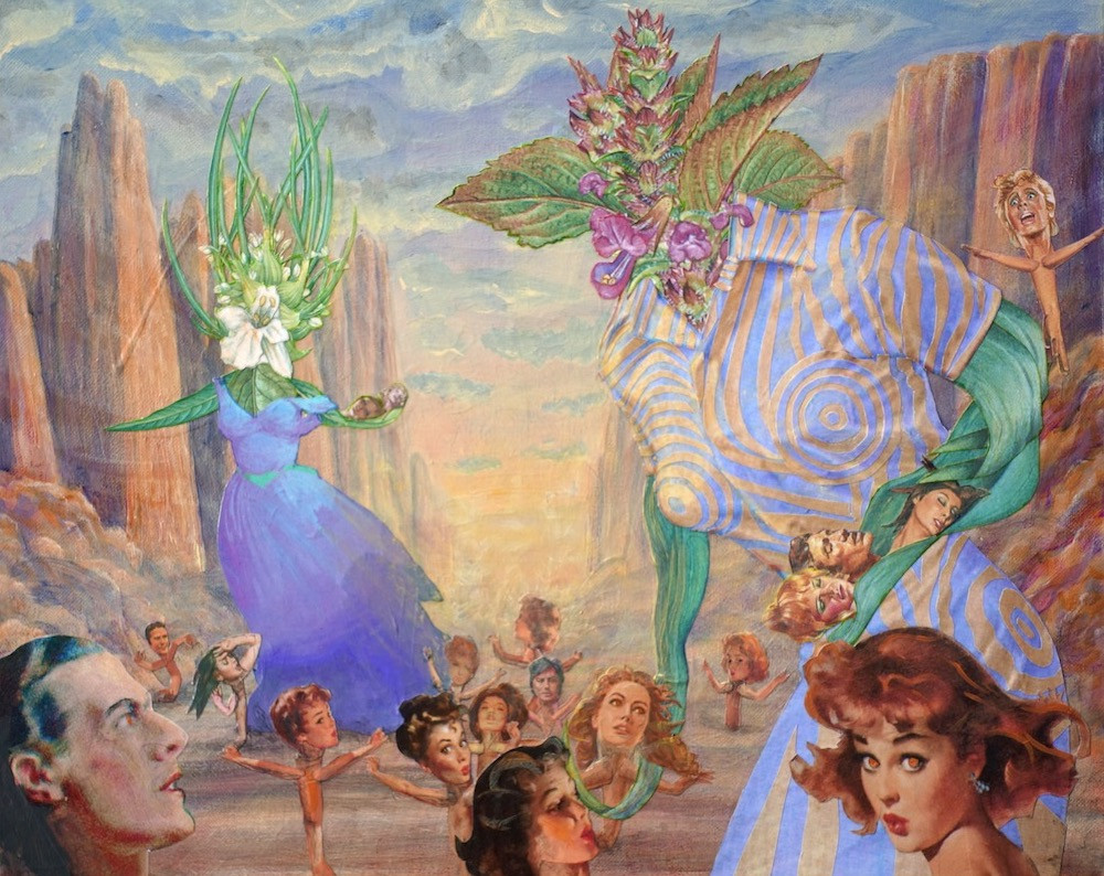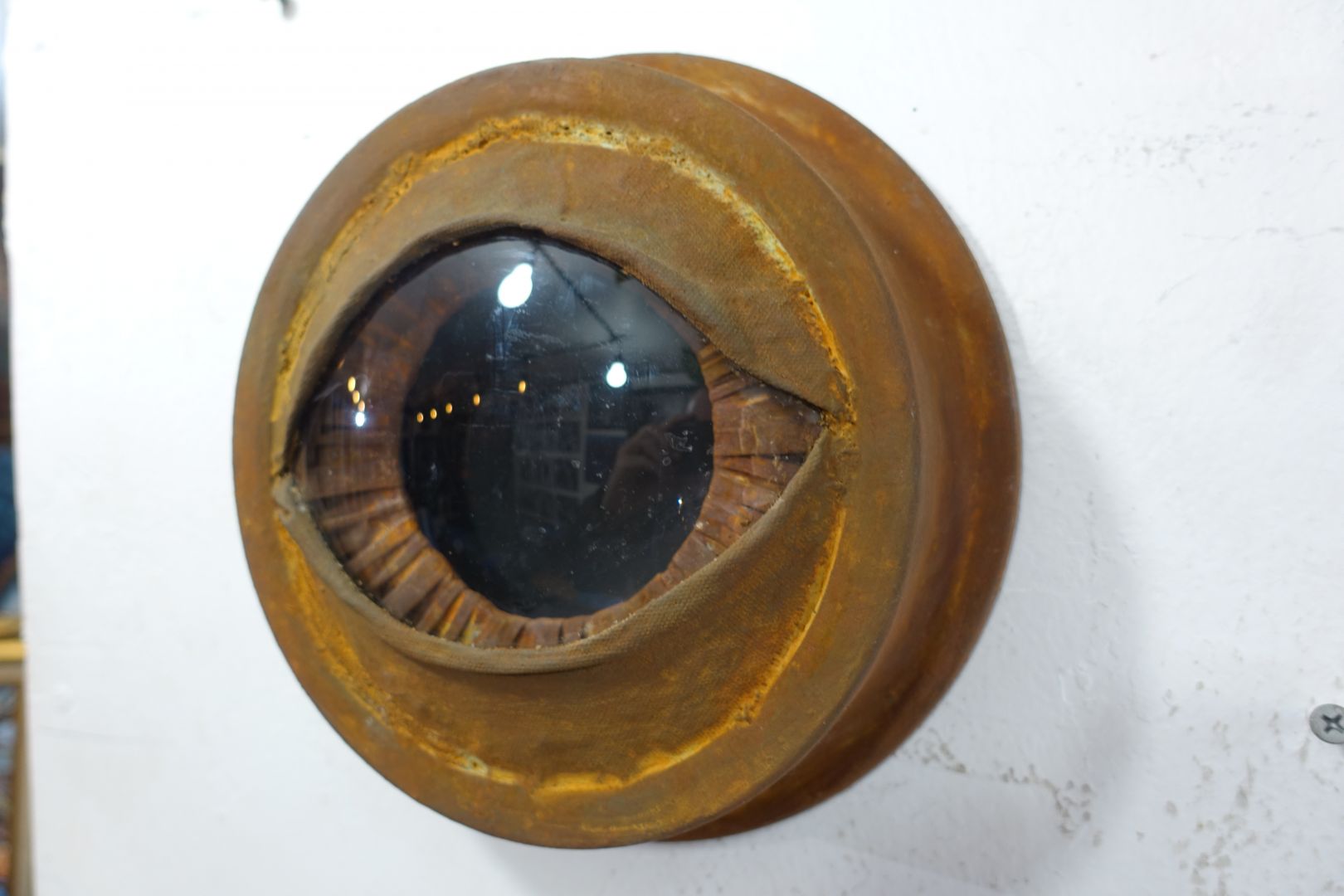 One aspect of my work is that I create 3D Eyes using lenses from old spot lights and glass domes I find here and there. By the nature of the convex in the eyes they look like they are following you as you walk through the room. I also make flat wall pieces on canvs and board using Photography collage and acrylic and oil paints. The images that emrge through my work are described as surrealistic or magic realism. I get the coment “I have never seen anything like this before!” a lot. I got to where I am by always making new things and developing my skills. I follow the Muse. Meaning I create from where the energy flows. If I force it in a direction that is not flowing it does not come out so easily. And sometimes that works. and other times it doesn’t . There is a certain feeling I get when it just flows and the piece comes together nicely.