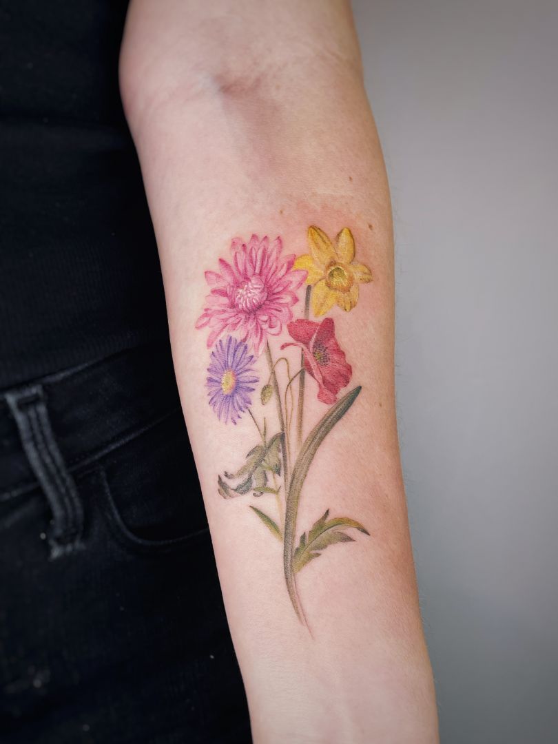 I specialize in fineline tattoos and realism, using both color and black and gray. One of my most requested subjects is floral composition, but I’m really happy to accept a variety of requests ranging from portraits and botanical art to lettering and minimalist geometrical tattoos. I love creating a unique custom piece for each client, based on their original ideas, which can be as detailed as a book or as vague as a single word. The creative process is something I thoroughly enjoy and I value every project that comes my way.