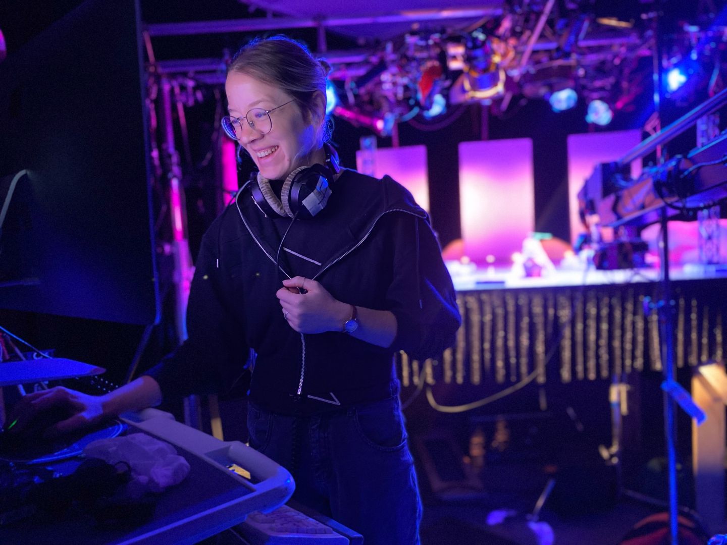 Tommi Cahill Arneson, Ancient Order of the Wooden Skull (cover photo and set photo with the hi-pink lighting) NATAS courtesy Marc Bryan-Brown photography (Emmy photos)