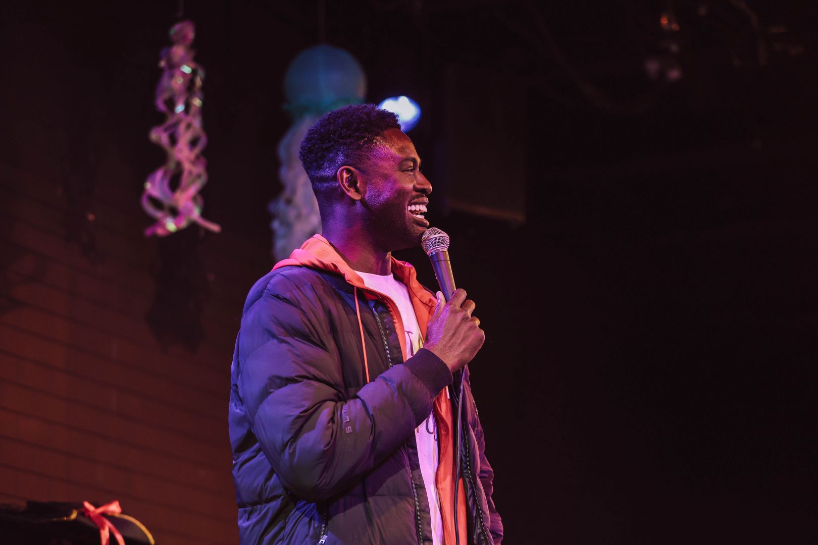 When I connect with people, if I like the person I’m connecting with, I like to ask thought-provoking questions like what gets them out of bed everyday and how they’re doing emotionally lately. I love talking to people about that, and telling them my answers to those prompts, because they get us to think about and vocalize what’s so special about being alive right now: the experience of living. I believe having a cognizance of that is essential in living a full life and in enjoying the biggest parts of a full life, which include the things we do for a living. Bonus points if you do creative things you enjoy for a living. So having serious conversations like that, while finding moments to connect with people and laugh at appropriate parts of those convos, have helped me connect with audiences in comedy clubs and in corporate entertainment offices. Which in turn have helped me build a life and a career out of comedy in Los Angeles.