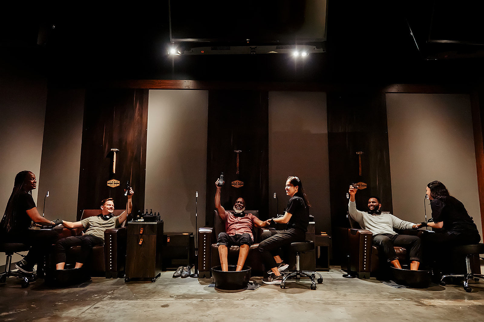Hammer & Nails actually originated on the TV series, Shark Tank where the founder, Michael Elliot pitched the idea for the ultimate man cave where men can sit back, relax and enjoy manicures and pedicures the way females always have. While he did not strike a deal on the show, he saw the vision through and took it upon himself to open up shop on Melrose Avenue in Los Angeles, CA.