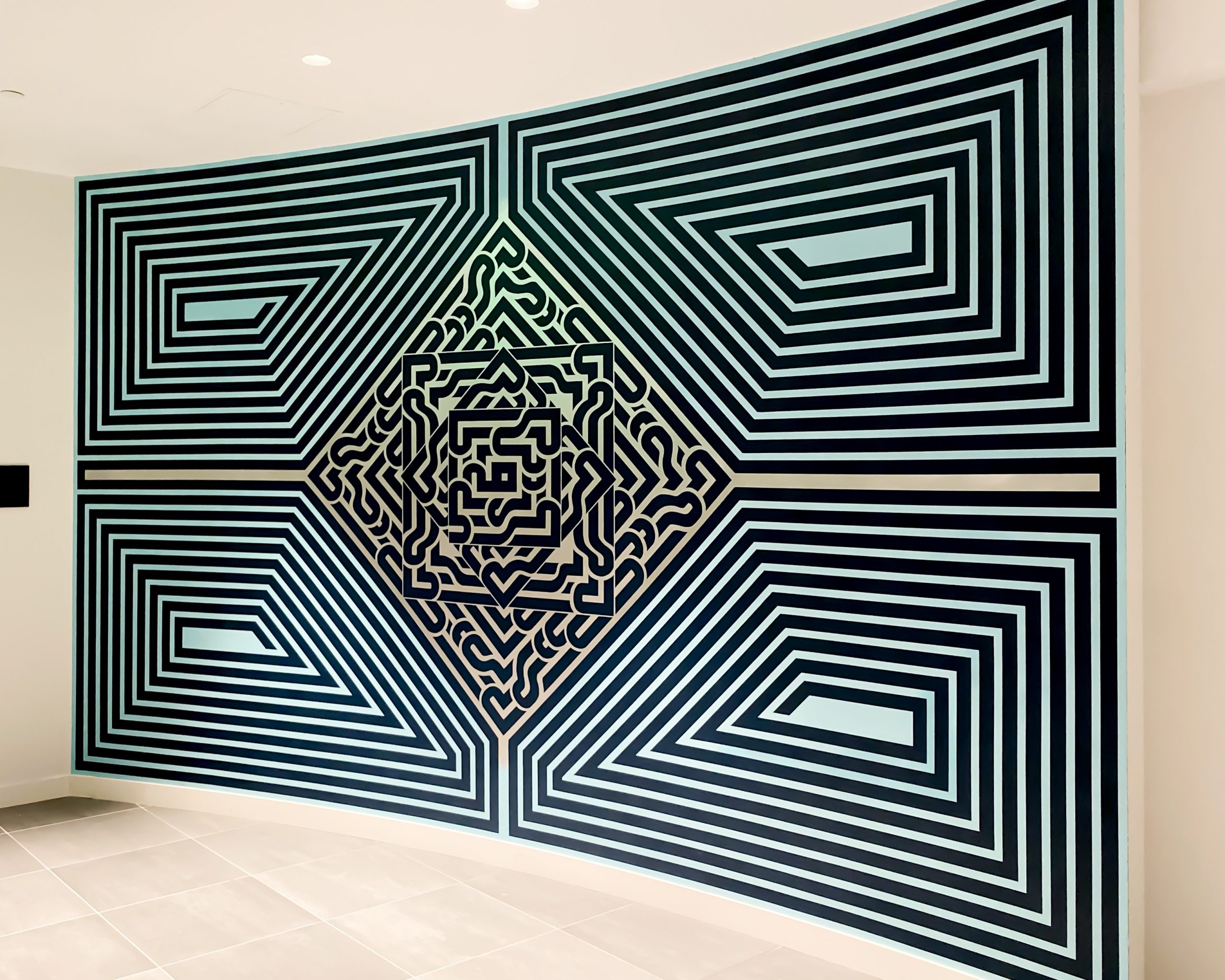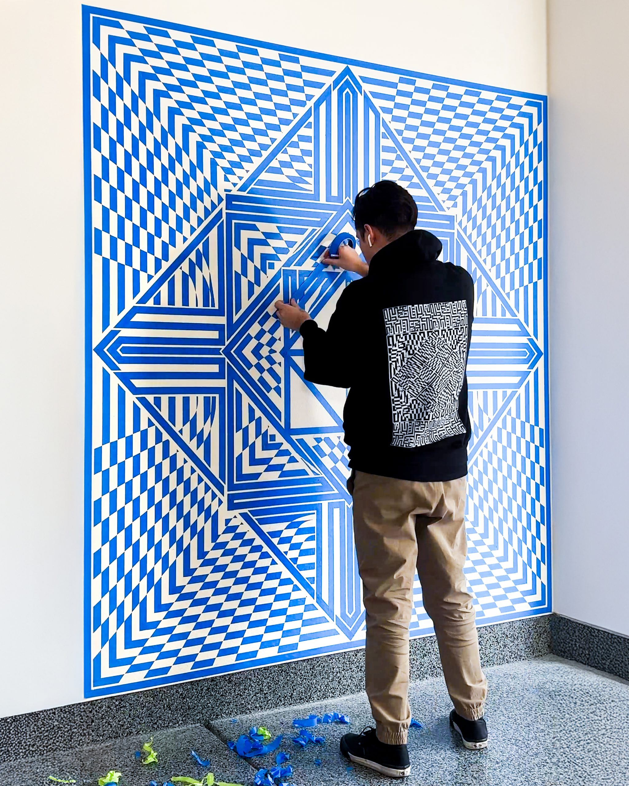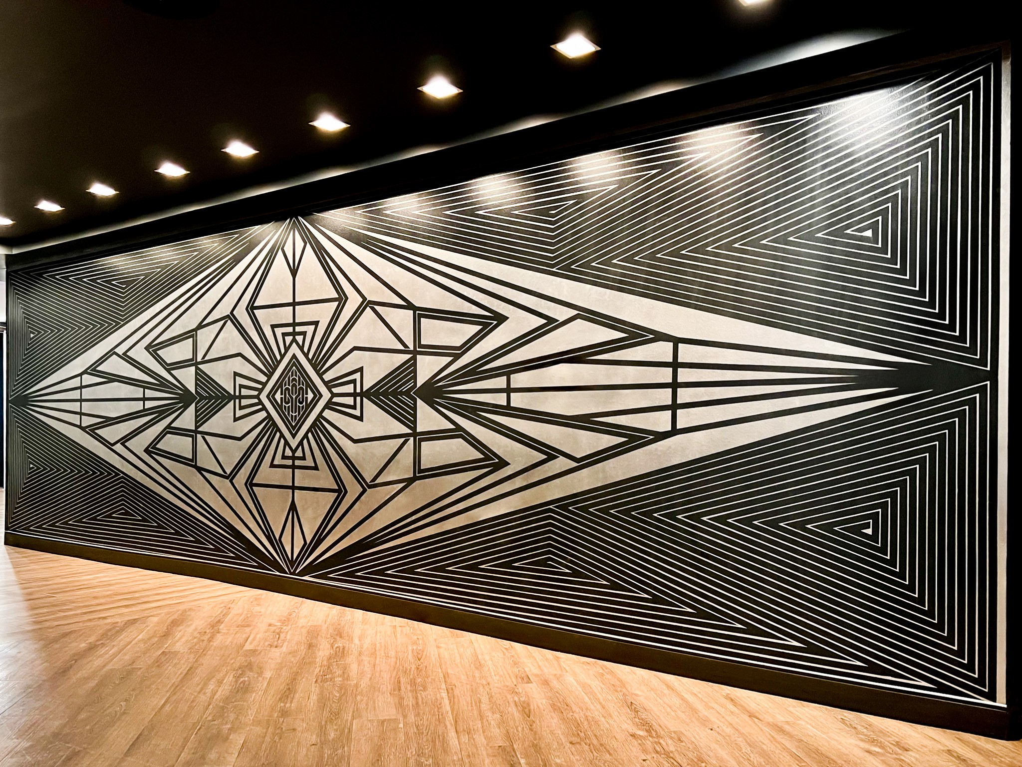 My art is a reflection of my journey, rooted in sacred geometry, entirely free styled, and created with a medium that most would not expect, tape. What sets my work apart is the precision and depth I achieve without using measurements. Every design is built instinctively, layer by layer, bringing movement and energy to my murals and art pieces.
