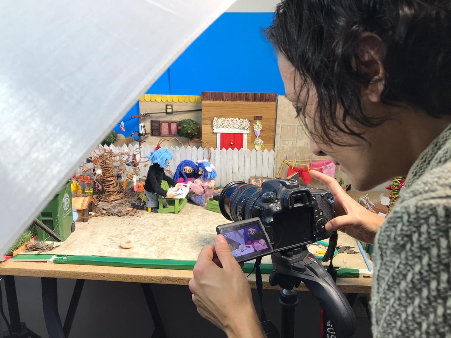 I am an Art Director, Stop Motion Artist and One-Woman-Film-Crew. Doing and making everything by myself brought me to develop my own shooting and animation technique. Moreover, I don’t use any specific software nor “trick”, such as green screen, overlay, or CGI. What you see is what you get and that’s why I like to define my style as “Hardcore Stop Motion Animation”. Another peculiarity is that I use waste materials and daily use items to fabricate sets and puppets – turning something into something else, and always embracing the blemish. When the film is wrapped, I turn the set into a diorama and decompress for a while working on single miniatures and fanzines.