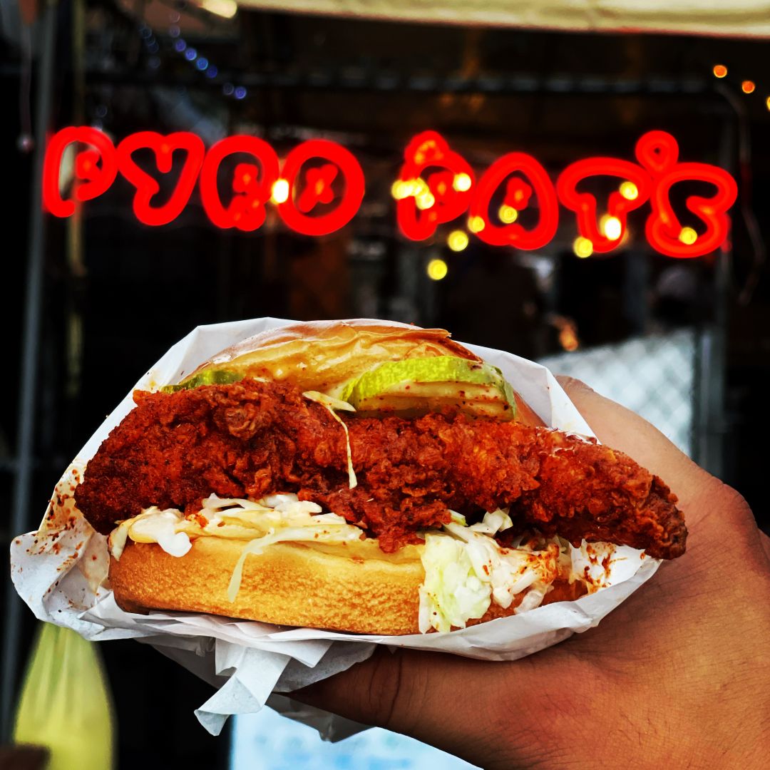 Pyro Pat’s was founded by LA natives, and childhood friends Patrick Karadjian and George Bedrosian. We are a chicken restaurant specializing in Nashville style fried chicken. Pyro Pat’s was founded with high morals and ethics in mind. Our chicken is halal, and our ingredients are organic. About four years ago my friends and I discovered a place called Howlin Rays. Little did we know, they would eventually pave the way and jumpstart the entire hot chicken scene in Los Angeles. Two years later, with absolutely zero culinary experience, I quit my 9-5 and decided to dive head first into the Restaurant industry. Specifically Nashville style fried chicken. Soon after, I started working at another start up hot chicken joint, worked my way from the ground up, and became head of operations. Three years later, I found out that Patrick had a hot chicken concept in mind that he wanted to bring to life. I contacted Patrick with the intentions of picking his brain, but little did I know he had the same exact thing in mind. Shortly there after, we met for a few hours, and Pyro Pat’s was born. I was originally very hesitant and unsure of whether to venture out on my own, but the one thing I’ve learned over the years is that a closed mouth doesn’t get fed.