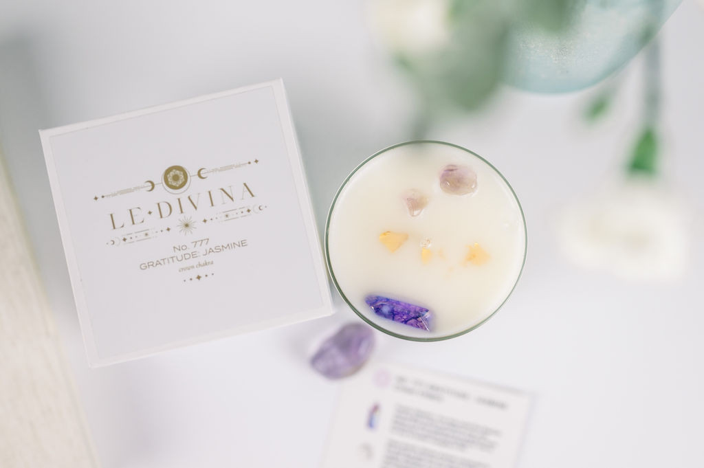 I wanted to have a premium fragrance candle line that incorporated intention setting. I do send an intention to our crystals that they bring light to the receiver. I added angel numbers and the chakras to unite the classic candles we carry.