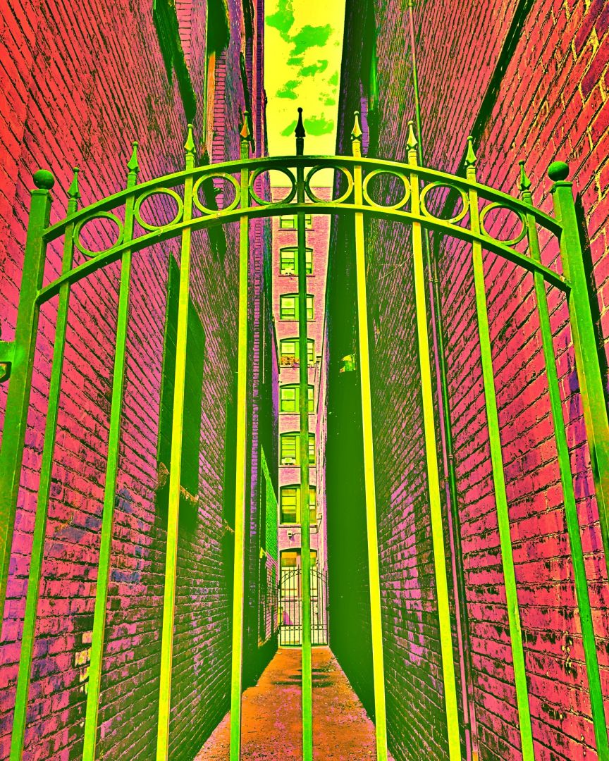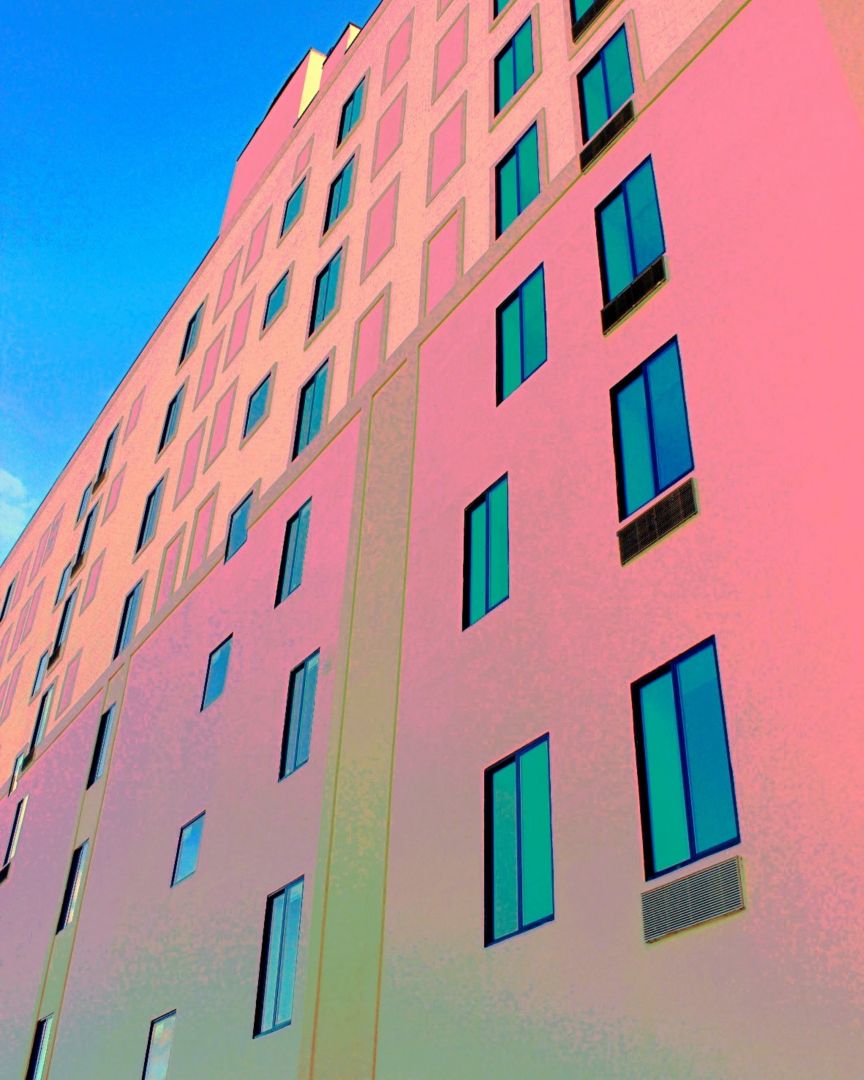 I then took the idea of reimagining the colors and shapes to the photos I took when I was out walking around on my breaks at work. By that time those walks were in downtown Springfield and I was being really inspired by the lines and angles of the architecture, the mix of older and newer buildings, and the way that reflections impacted my view of the city. These walks around the same areas over the course of time, the shifting seasonal light, the different weather, got me thinking about how I see where I live… it made the buildings more alive. I feel like, based on the colors and the manipulations, that I’m pulling personality and possibilities out. Reimagining how the city looks, and how the city could look and exist, changes the way I think about the realities in the city. It broadens the possibilities.