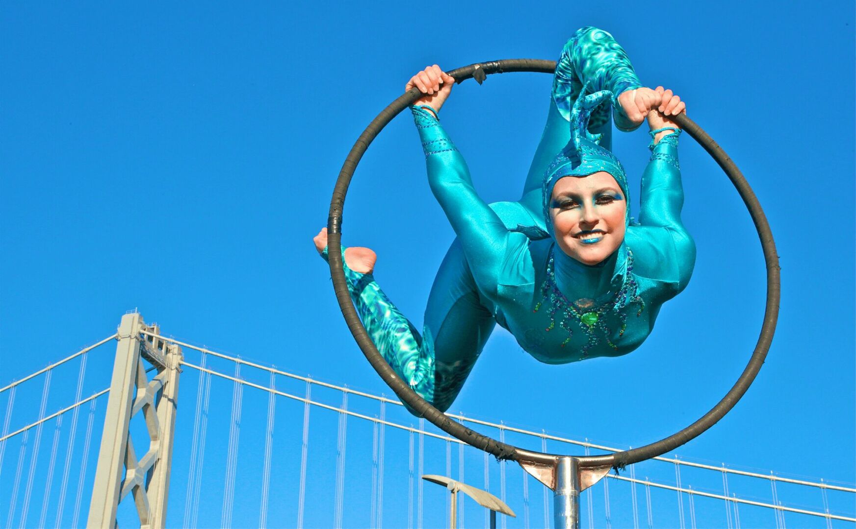 I‘ve personified it in our shows as Ms GG Bridges, an in-the-flesh character, the liberated Grand Dame of the City. She is also depicted in artwork and activations throughout our museum experiences. The Bridge is the world’s largest masterpiece of art deco design and a miracle of engineering, straddling the majestic strait where the Pacific Ocean and the SF Bay meet. So go check “her” out!