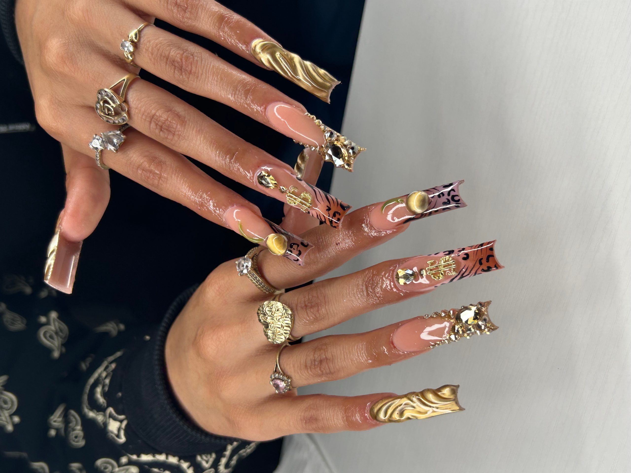 There was no thought process, I was a high school drop out at 16, I knew if I left school I didn’t wanna be a bum at home so I got myself a job working security. I remember I lied about my age & told them I was 19, they didn’t ask for my ID, social, birth certificate they just said you’ll do 12 hours everyday and get paid 20$ an hour under the table, I was at the job for 6 months until my boss caught me sleeping than fired me, I remember going home that same day not knowing what was the next move, I was a drop out & now jobless. I knew I could make money with nails, so I went to facebook and posted an ad about my nails, it was just a hustle something to put money in my pocket, that ad was up for two days, within those two days I was booked out for 3 months. It was a hustle at first.