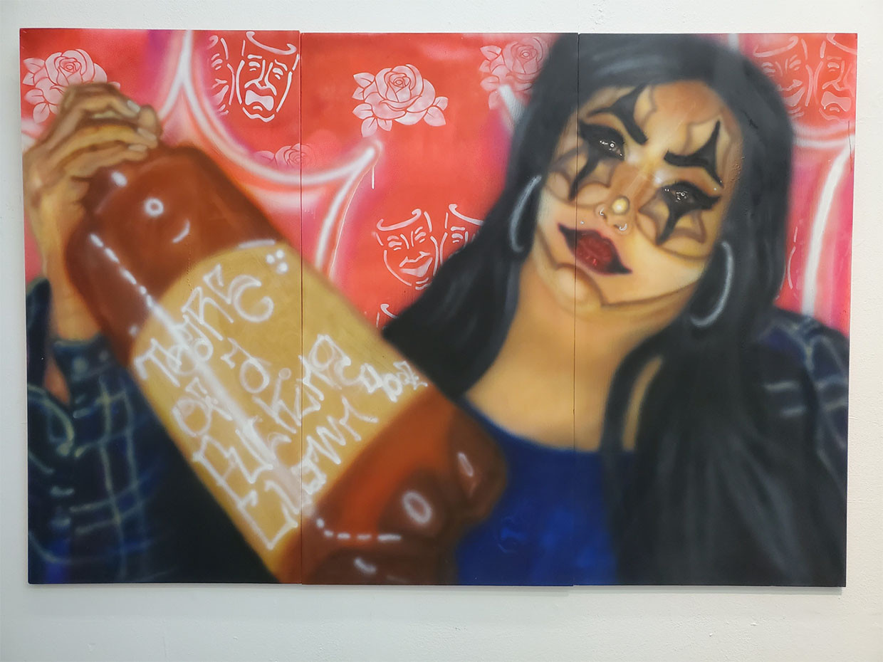 I’m inspired by my culture and life experiences. I pull from the adversities I’ve faced and will continue to face as a Brown Chicana woman. From colors, textures, imagery, food, smells, locations and emotions, it’s all represented within semiotics.