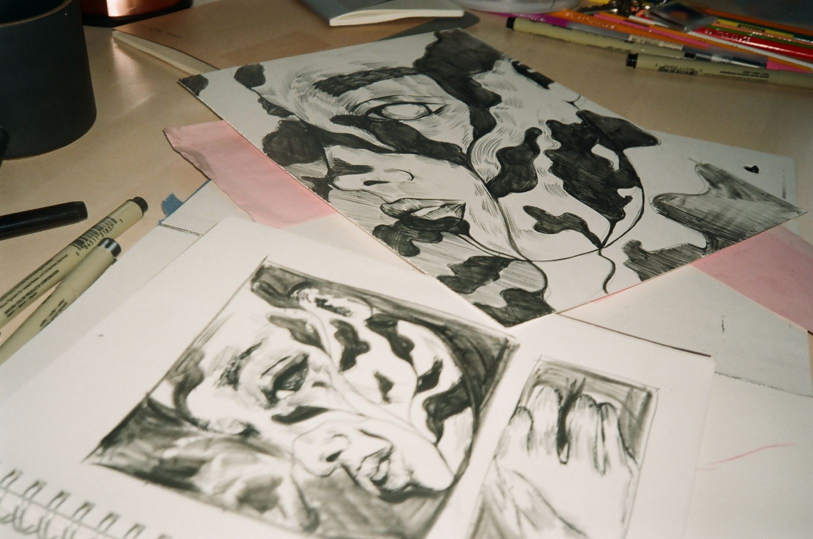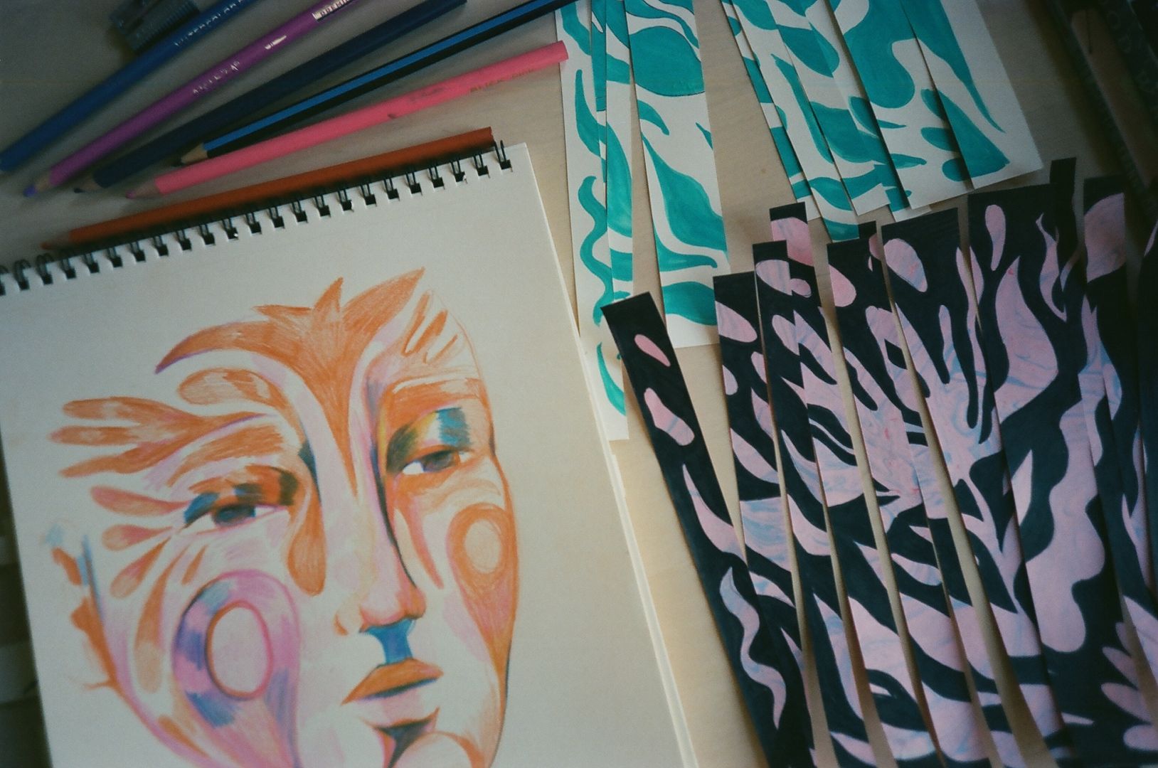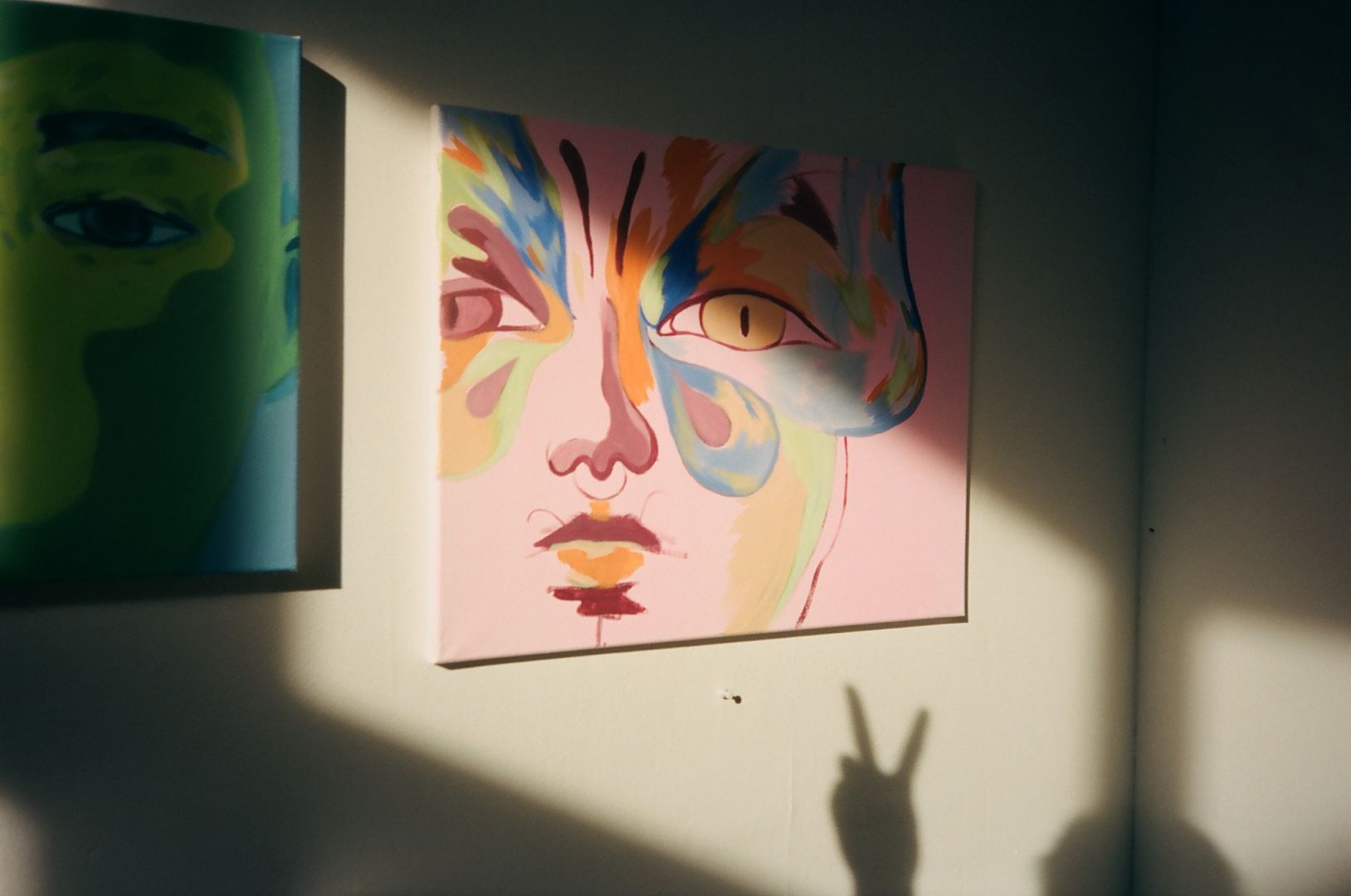 At the moment I am inspired by anything that plays with form, At the beginning of this year, I became obsessed with the visual concept of a ‘glitch’, and began experimenting on how I can bring this digital concept (that almost exclusively lives on screens and the virtual world) into a traditional analog process. I experimented with creating images and cutting them up to bring them back together, traced images and offset them using a light box, painted a whole canvas and masked off particular areas, and re-painted them to be offset. The final product for all these experiments was more or less the same, but I enjoyed the process of what each method offered.