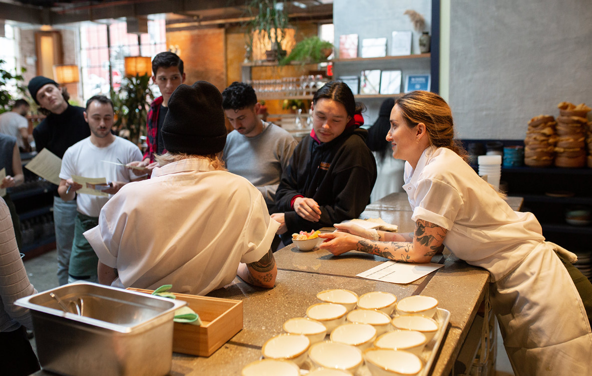 I have been cooking professionally for about 13 years now. I decided I absolutely needed to cook in New York City, and no where else, after graduating from culinary school. I’ve worked under a number of really prestigious chefs, including Alex Stupak, Chris Cipollone, and Carlo Mirarchi. I’ve been very fortunate to have worked with each of them and to have learned an array of techniques in various cuisines. I think what sets me apart from others is that I think it’s so important to have fun in what we are doing. So frequently, cooking is taken very seriously, and the whimsy and excitement that come from cooking are really the best parts about it for me.