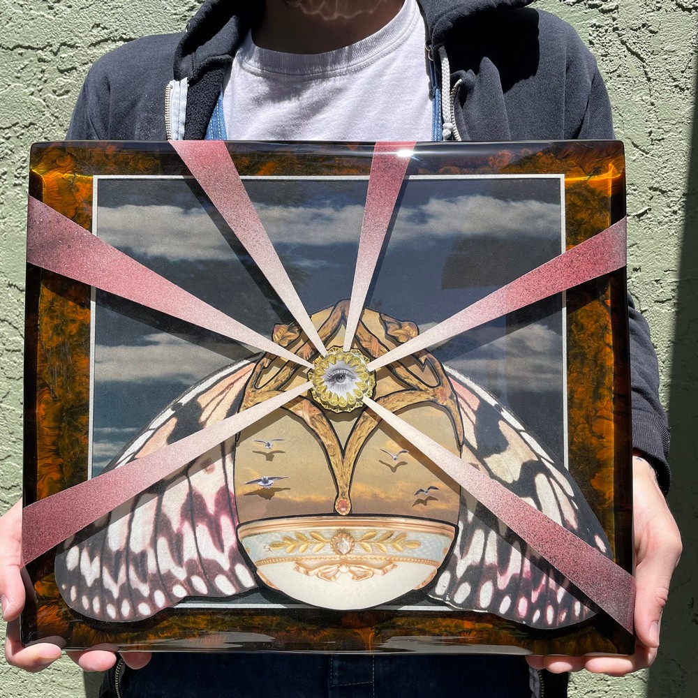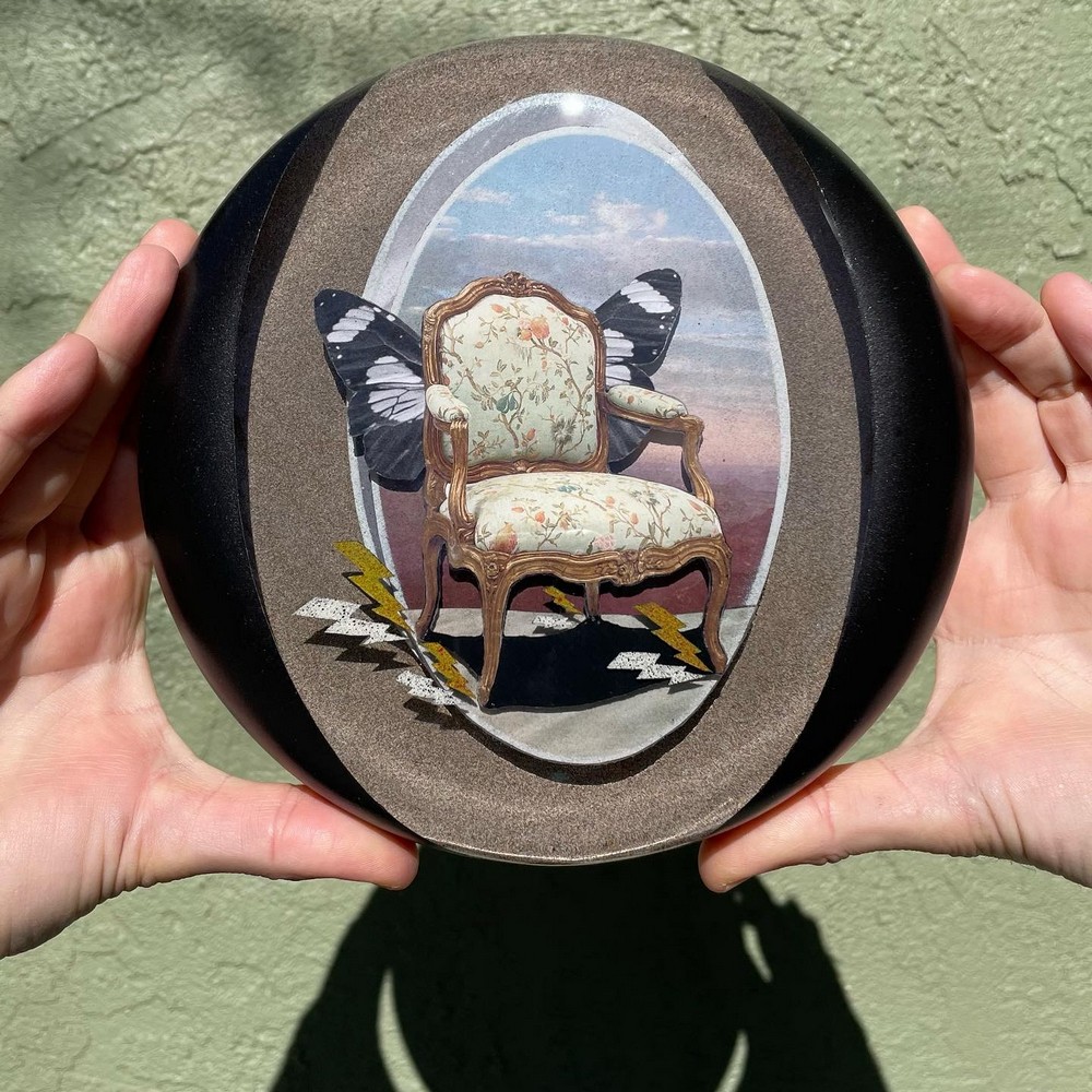 I am an artist that creates mixed media hanging sculptures. I work with a variety of mediums including paper, paint, found wood and epoxy resin. I’m most excited to get up each day and create new work.