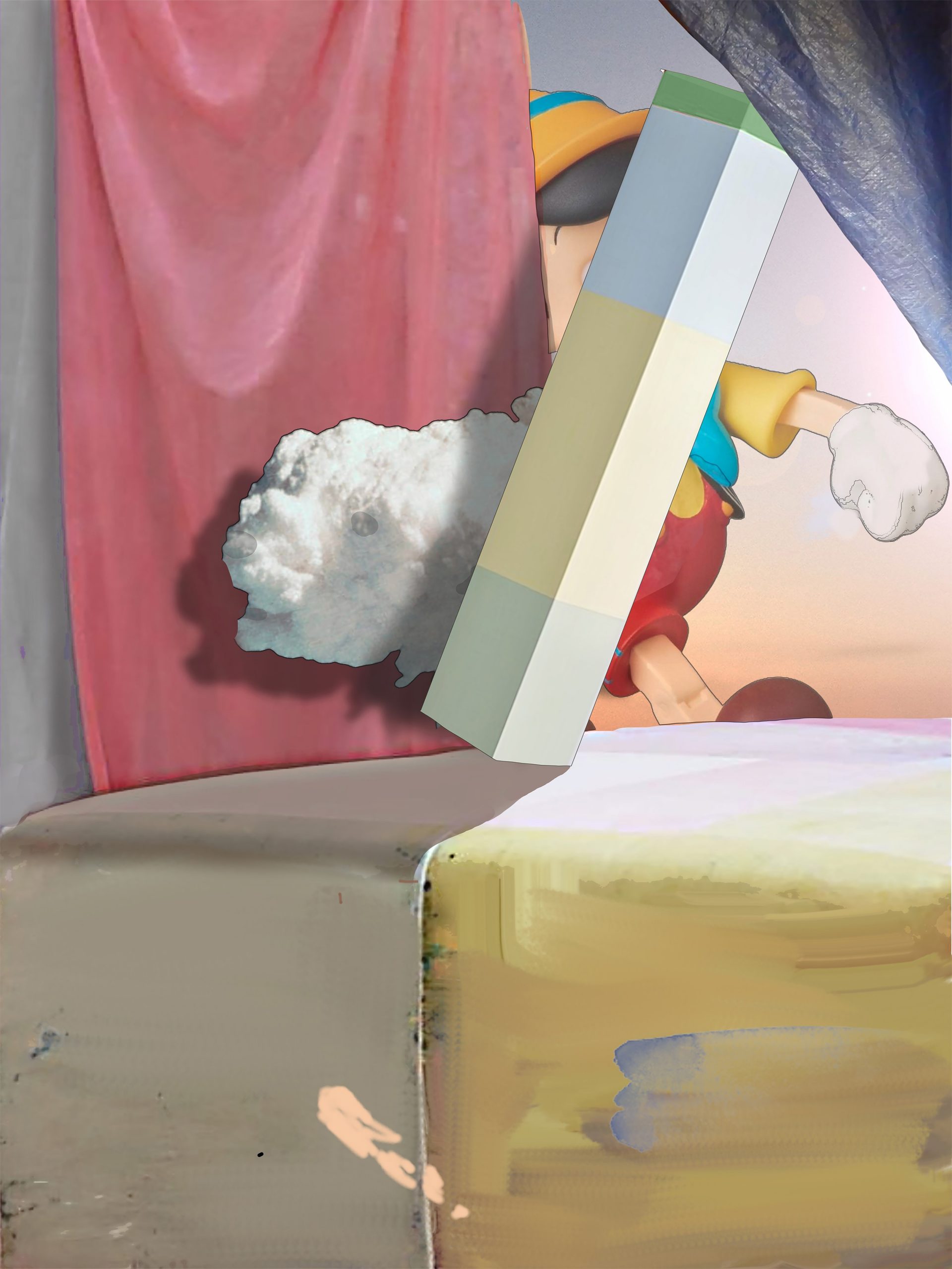 At present, I’m producing computer generated pictures, a process I came to learn out of necessity. After completing my BFA , my wife and I moved from Dallas, Texas to Chicago in the late 90s. There, I worked in a 1,000 sq. ft studio where I could go nuts on large paintings. A few years later, we relocated to NYC, which had an immediate impact on the way I was used to producing paintings. Unfortunately, at the time, locating a studio space that we could afford was out of the question as anything available rented for almost as much as what we paid for our apartment. Suddenly instead of producing large works, I had a small area in our apartment where I made equally small paintings, which didn’t cut it. Long story short, I purchased a computer and began producing pictures and having them inkjet printed on a large scale. That was more than exciting for me as not only could I create paintings, albeit virtual ones, I could work through all the multiple iterations, making use of mistakes, all without creating a surface mess with paint. Sometimes, circumstance is the mother of innovation.