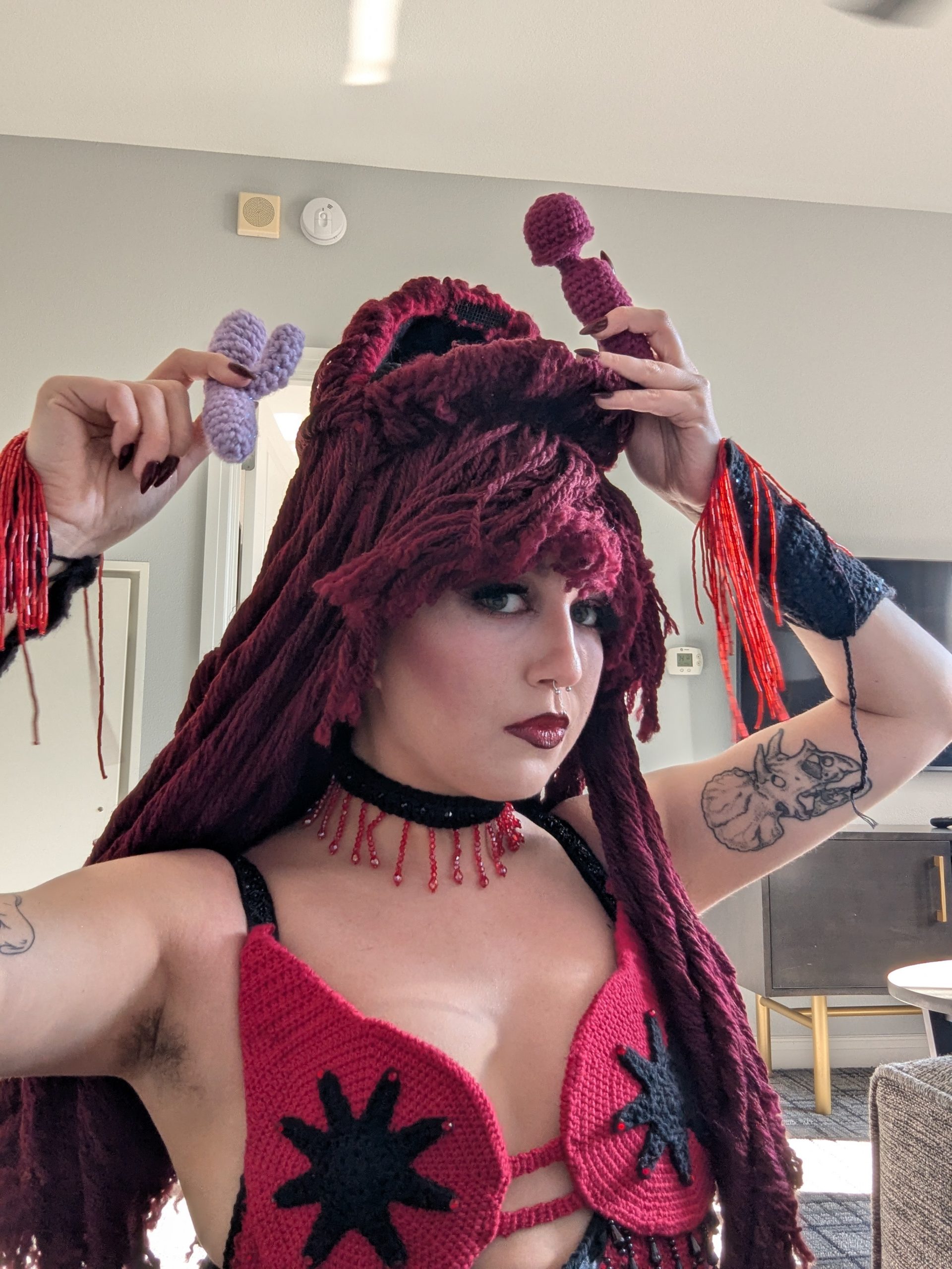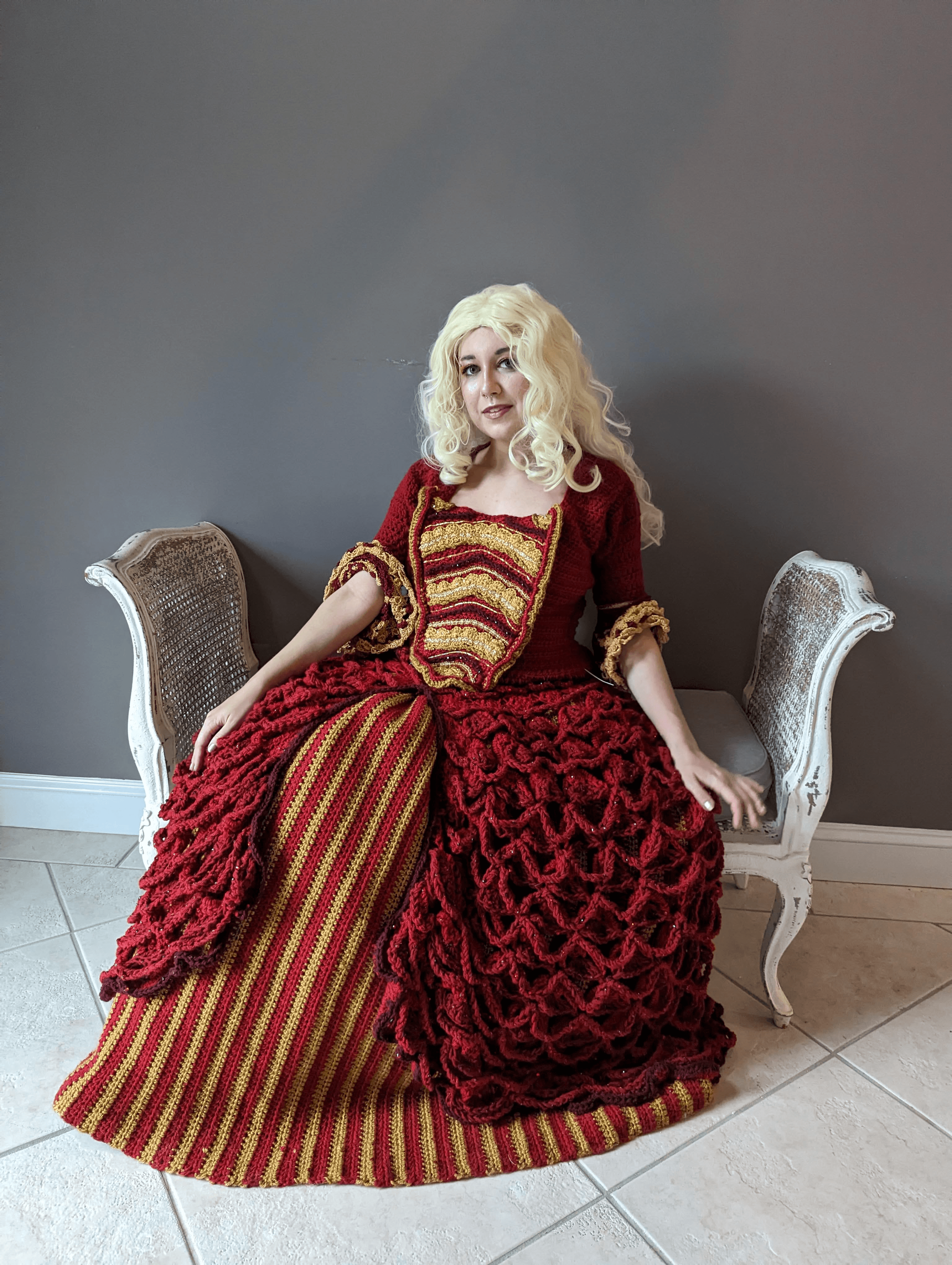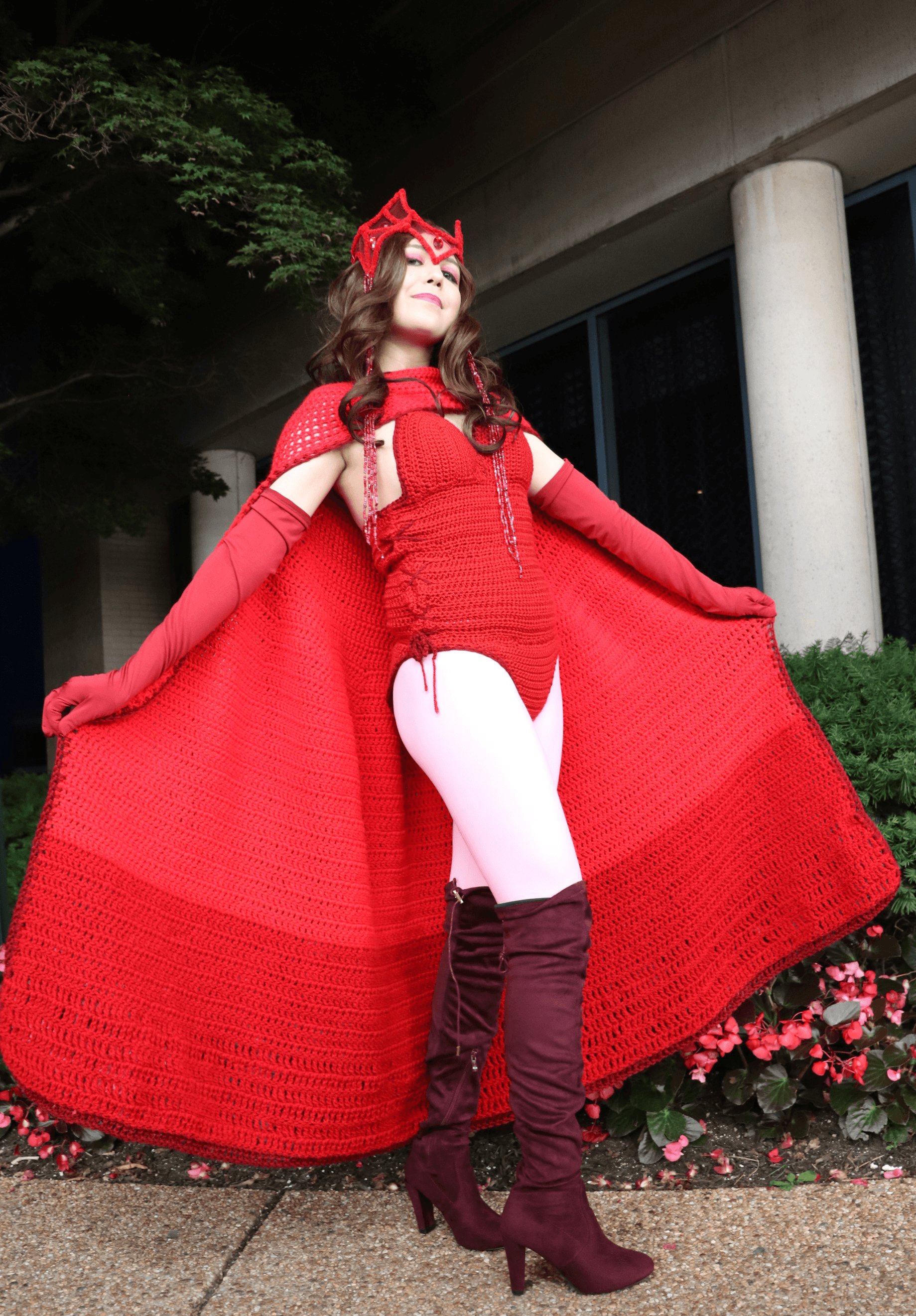 In 2014 I made my first fully crocheted cosplay; I dressed up as the Scarlet Witch from Marvel Comics which is how I got my title of Scarlet Stitch. Crochet and cosplay were both mediums that I fell in love with quickly after being introduced to them, it was only a matter of time before I combined the two. I love the challenge of turning something that you wouldn’t expect to be crocheted into a reality with a hook and yarn.