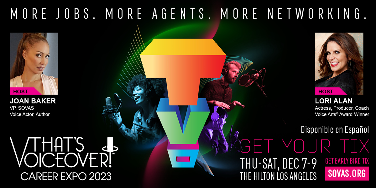 In addition to the Voice Arts Awards, SOVAS oversees That’s Voiceover Career Expo (TVO), having spanned almost two decades, continues to be a key event in the voiceover industry. Our strategy is getting voice actors working. We’ve secured relationships with industry buyers to provide actual jobs, exclusive to our event. This year, we have six paying jobs, both union and non-union. TVO links theoretical learning with real-world jobs, with attendees learning from top voice talent and auditioning for jobs.