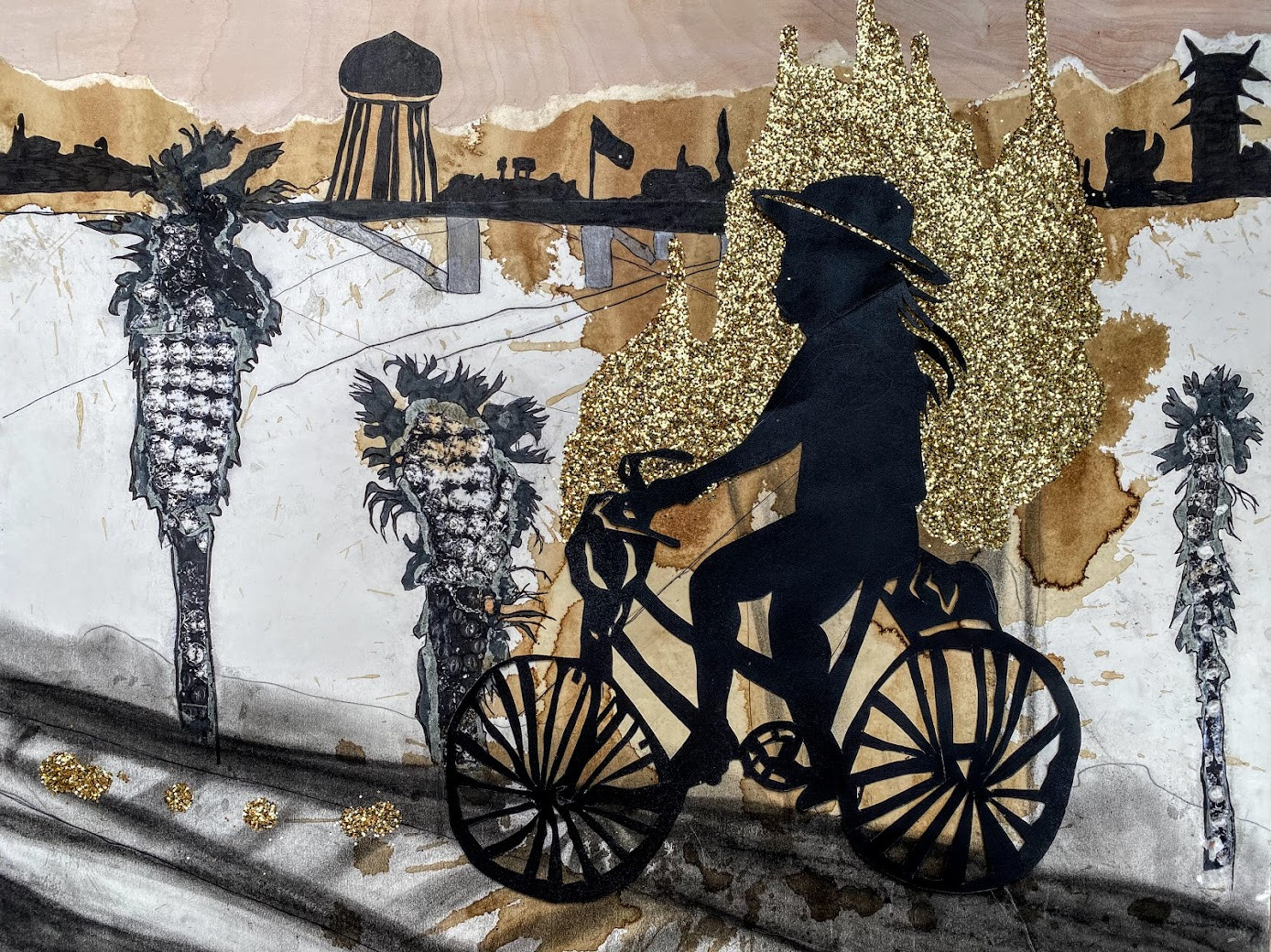 I am a mixed media artist whose artwork reflects the beauty and harshness of living in Los Angeles and the current state of the world. I work with drawing, painting, collage, photography, printmaking, installations, and textile art. The materials I use are both traditional and everyday objects. Most of my works are surreal landscapes, portraits, and self-portraits. My artwork also addresses self-identity, femininity, mental health, and political issues. I also print my artwork on shirts and sweaters to make it more accessible and wearable.