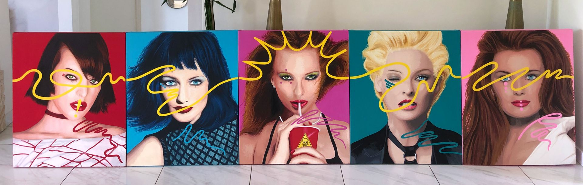 I call it Neo-Pop Art, but basically my style is retro pop art portraits, inspired by the fashion, design, and mall culture of the 80s and 90’s. I think a lot of artists have the “beginners luck” stage when they first start showing their work. I sold out my first few shows, and that pretty much solidified my path. However, the more established you become, the more difficult the art world is to navigate. Between raising your price points, finding collectors, new venues and galleries, and constant promotion, it’s as much work outside the studio as inside. I’m currently working on planning some pop-up shows for some of the various fashion week festivities around the US. As it turns out, the fashion world is equally as difficult to navigate. as the art world.