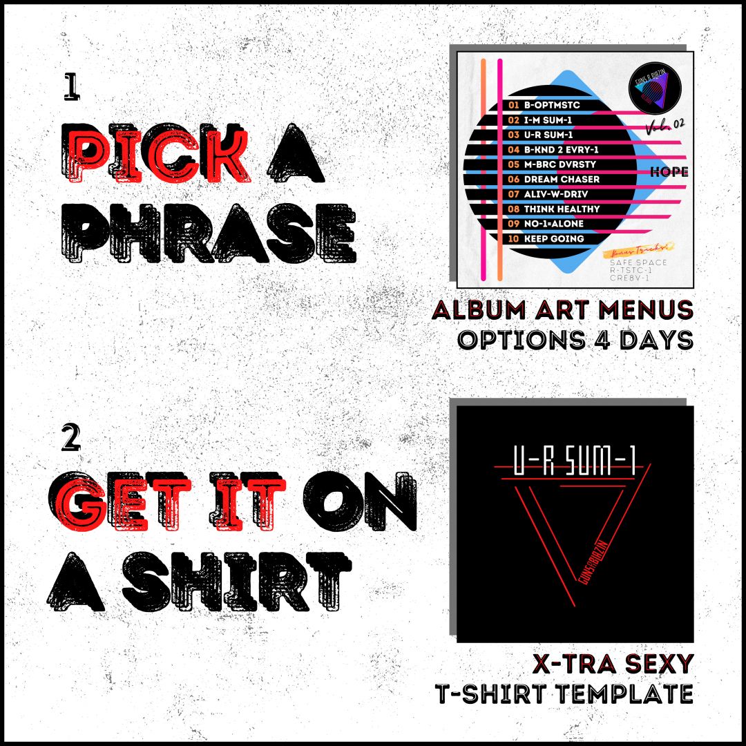 Pick a phrase + get it on a shirt! GUNS R BLAZIN launched with a clear intention to inspire others while looking good in the process. The idea of putting a custom phrase on a t-shirt once ruled the 80’s shopping mall scene. GRB upgrades this vibe and matches an extra sexy t-shirt template, with a phrase of your choice from volumes of album art menus. There are over 100 phrase options to choose from, ranging from uplifting to borderline bonkers, so get ready to laugh while being inspired at the same time. Choosing a phrase is a lot of fun and these tees make great gifts! You can also request a personalized phrase by reaching out via email (gunsrblazin@outlook.com), or sending a direct message on Instagram (@gunsrblazin). I recently added some sick logo tees to the online store, as well as distressed hats – they look awesome and fit great! For a limited time, get 10% off your entire order at GUNSRBLAZIN.com by using discount code “GRB10” at checkout.