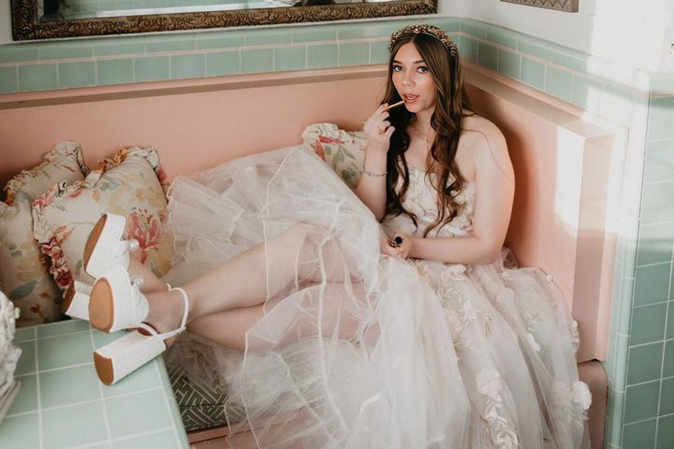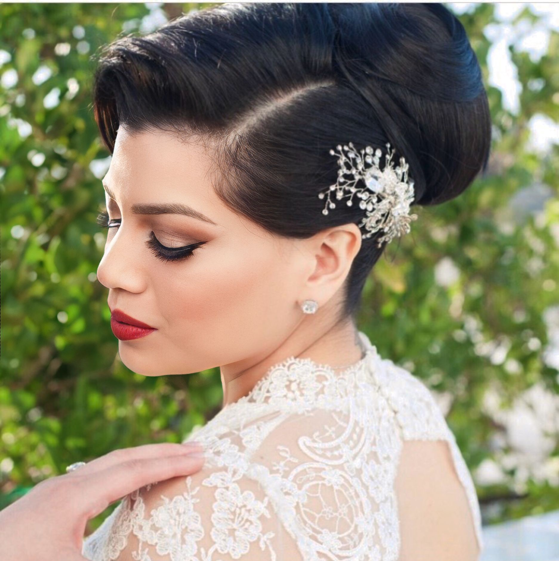 Melody Melekian on the photo of the bride looking down with red lip