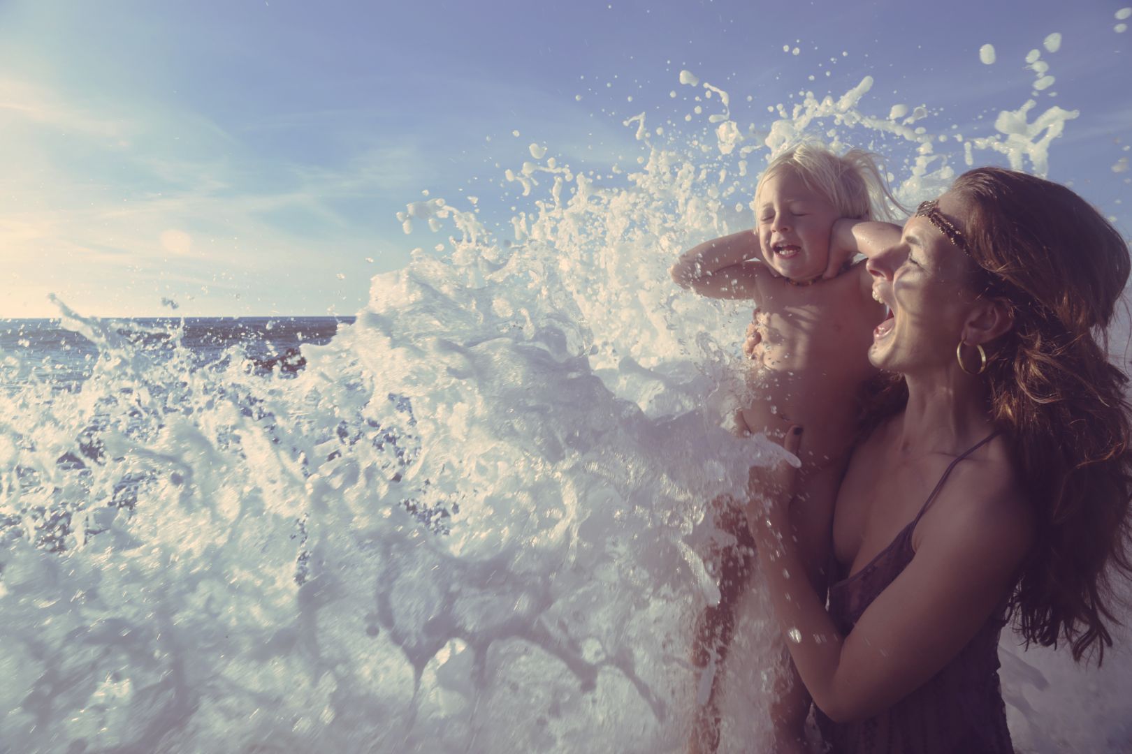 Image with drum on a ridge, Kim and Puma in the wave and drum photo- Julia Maryanska Image holding baby with illustrations- Thierry Perez for French Elle All other images- Inna Lila