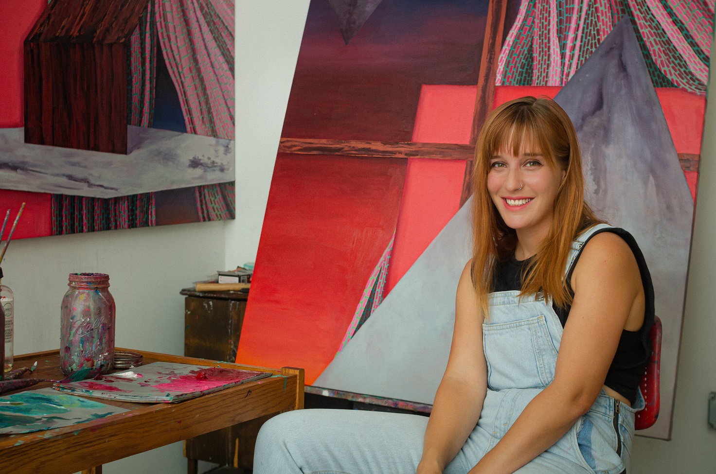 I’m really lucky to have a great support system in my friends, family and colleagues. I’m grateful to all of them, but I’m going to dedicate this shoutout to my partner, Paul; He’s been so enthusiastically supportive of me and my work, especially in quarantine. We’ve slowly been gathering supplies to have a functional wood shop in our yard so I can build canvas stretchers, and he’s a wealth of creative knowledge and experience to talk about art with and bounce ideas off of. I’m super lucky to be stuck in our house with him this year.