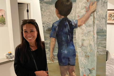I’ve always been a creative person at heart. From a young age I made my own paper dolls, origami toys, quilts, games. I loved creating. But my artistic career began when I became a mom. I started by painting my kids. Capturing their spirit and essence. Other parents would ask about my paintings so I started donating custom paintings and then started selling commissions. At the same time I obtained a Masters in Multimedia and Creative Technologies from USC leading to a position with the Engineering Visualization Resources group at Northrop Grumman where I used my creative passion to create data driven computer graphics and animations.