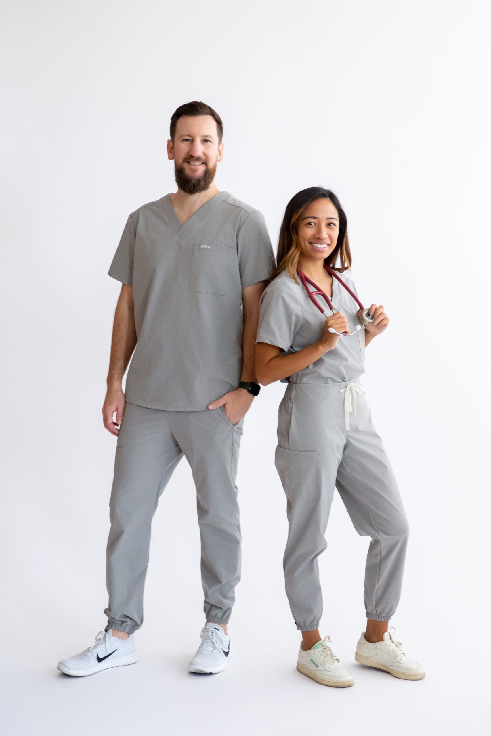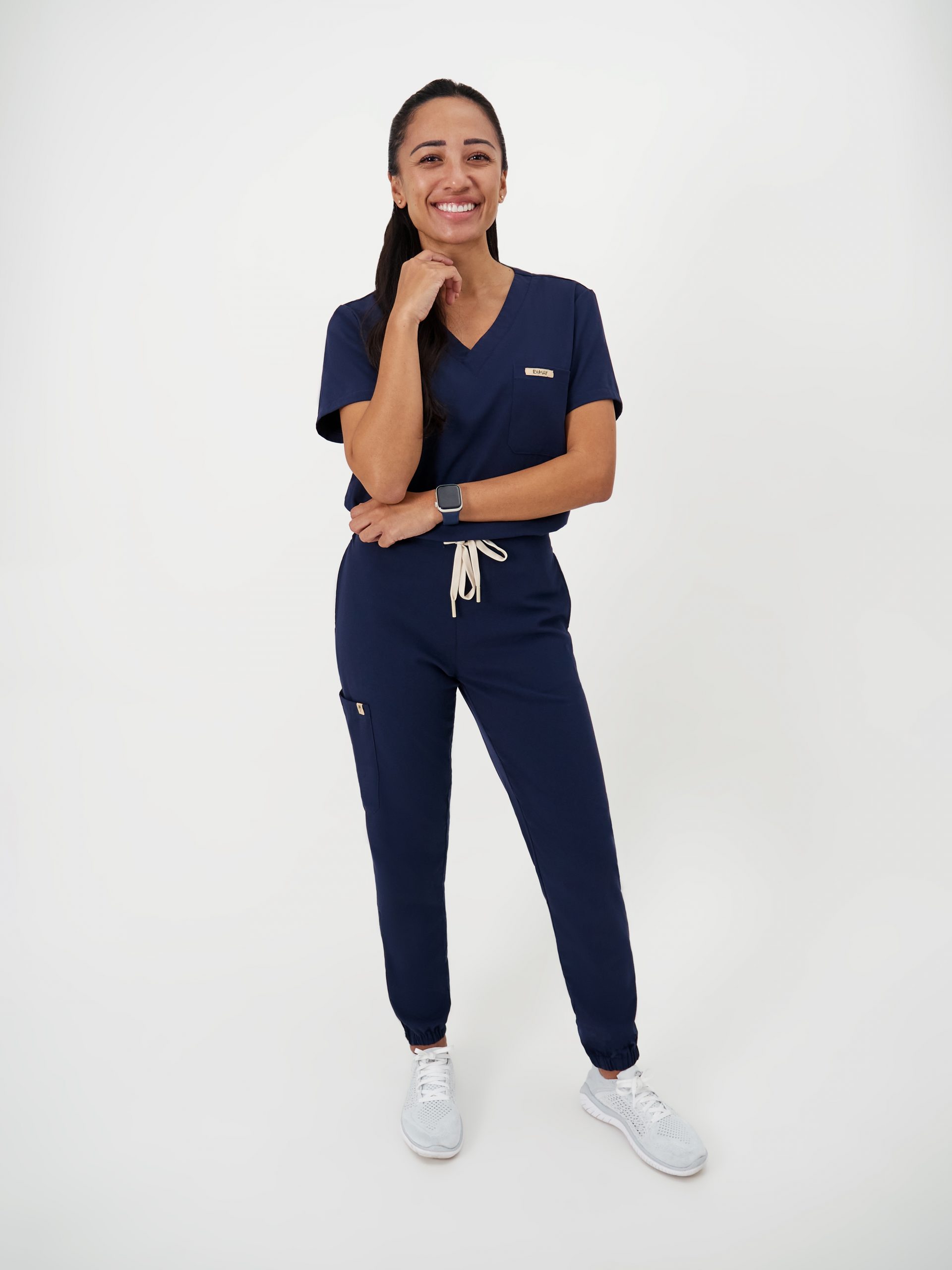 That’s when it clicked. Why not design scrubs that move with you throughout the day, offering both flexibility and the polished, classic look of a uniform?