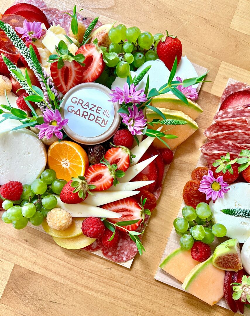 Graze in the Garden is not just a catering business; it’s a celebration of community, creativity, and the joy of food. What sets us apart is our commitment to sourcing the best local ingredients, collaborating with local farmers, cheesemakers, butchers, and small-batch bakers. This allows us to create beautifully curated grazing tables that are as visually stunning as they are delicious.