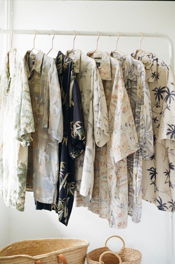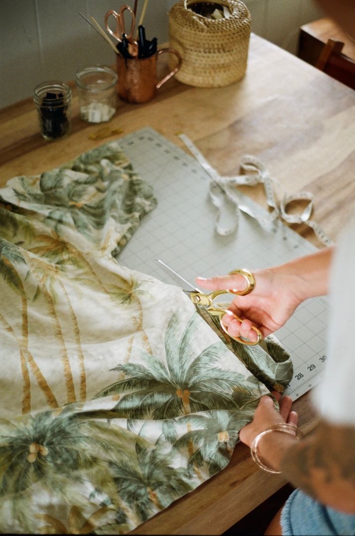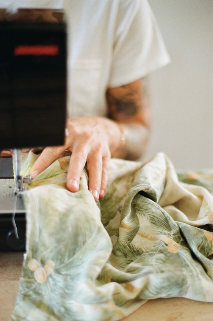 Being from Hawaii, one of my favorite things to thrift was vintage aloha shirts. So, I got this idea, why not try and use what I already have to create something new? I had thrifted so many beautiful shirts with plenty of material to use, and they usually had little flaws here and there that would make them no longer wearable, but not totally unusable. So rather than having them end up discarded, I decided to try and bring new life to the beautiful prints and fabrics. I busted out my little sewing machine that my grandma gifted me for my 11th birthday and got to work. I make everything by hand out of thrifted vintage and/or secondhand materials.
