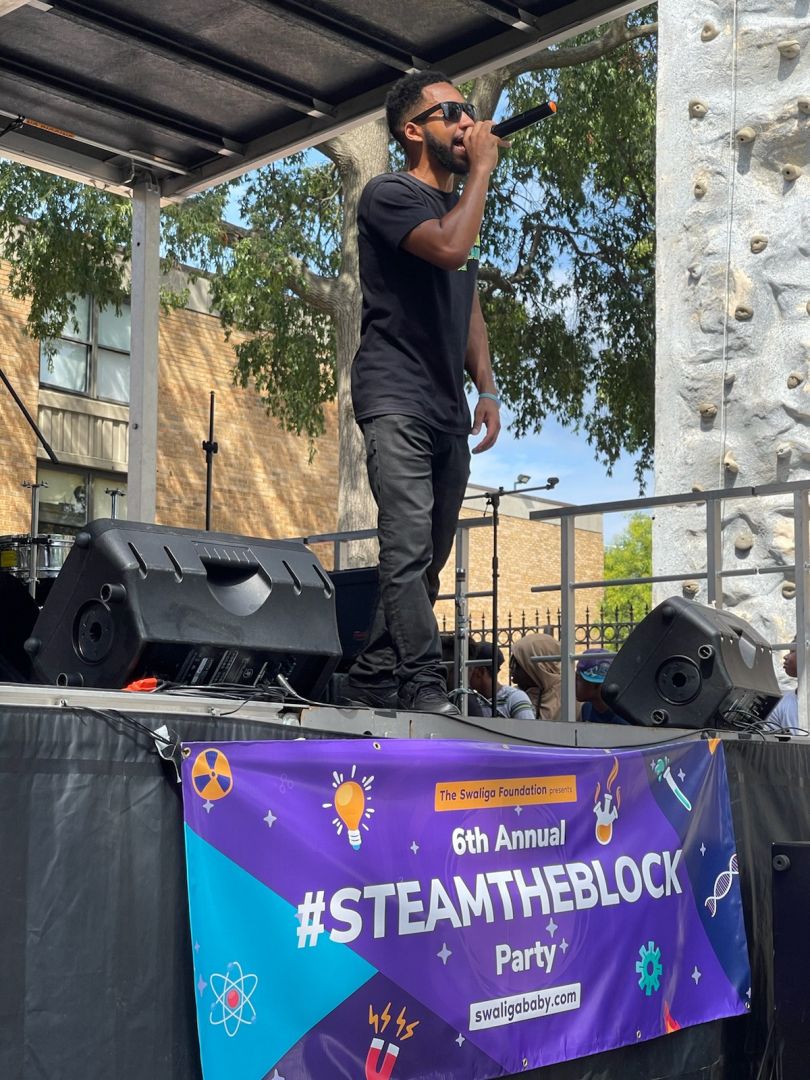 Today I’m known as the STEAM MC. My ability to explain complex science concepts in digestible ways over dope hip hop beats is unique. I haven’t heard any music quite like this, from how the production and sound effects compliment the lyrics and song topic, to the vocabulary words integrated into the curriculum, each song is a cohesive experience. When coming up with something new, it can be challenging to get people to listen. A lot of people are just learning what “STEM” is and most have never heard of STEAM education. There was also a challenge to get people to understand that this is different from educational music like “Sesame Street”, in that this is based around Hip Hop and the topics are much more complex in most cases. It was also difficult to write songs in a way that doesn’t come off as “corny”. The best way to get people to understand is through dedication, productivity and consistency. I’m preparing to release my second STEAM EP. My mission as IMAG the STEAM MC is to create so much STEAM Hip Hop music that I inspire a new generation of learners to get interested in STEAM and to also create their own expressions of this information for generations to come. Connecting my music to the schools and youth we serve around the world through the Swaliga Foundation is an important goal of mine. My contribution to Hip Hop is to raise the status quo of what skill and lyrical content look like. One day I hope to inspire more STEAM MCs to emerge and push the culture toward more intellectual bravado.