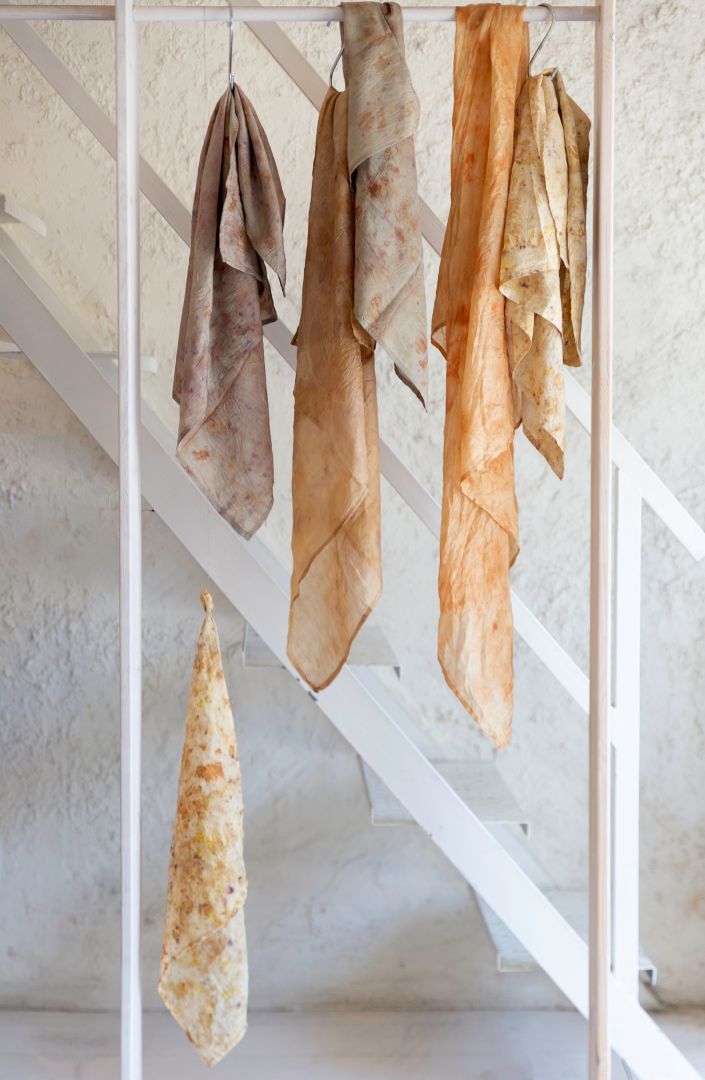 Naturally I have been gravitating to natural fibers and materials since finishing my studies as a student in textile design. I have been known to my family as the “Natural Fiber Expert”, approving every bought textile making sure it is made up of 100% natural fibers. While being a florist in New York City + Amsterdam this has led me to exploring natural dyeing with flowers on natural fabrics. Developing handmade products using this technique and expressing it in my way to beautify spaces. My sensitivity to my surroundings sets me apart – not only it being what I wear yet what I see, smell, taste and touch and extending this through my way of expression through materials in design and my art.
