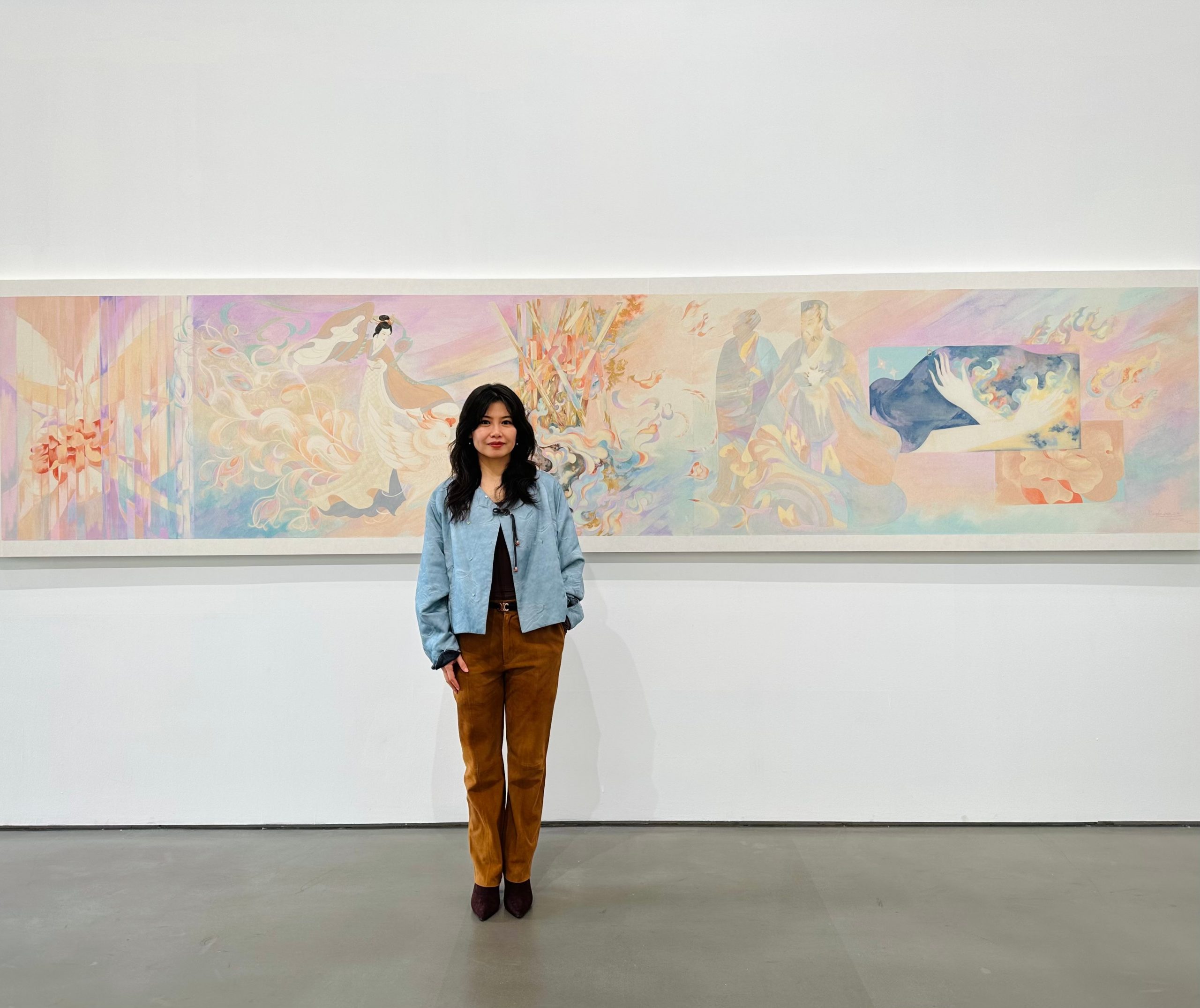 My art primarily focuses on painting, and I recently finished an exhibition called ‘异地而处’ (In a Different Place). The works in this exhibition were inspired by stories of ancient female figures, which I reinterpreted in my own way. I used organic materials like mineral pigments, paper, and clay boards to reflect the essence of these stories.