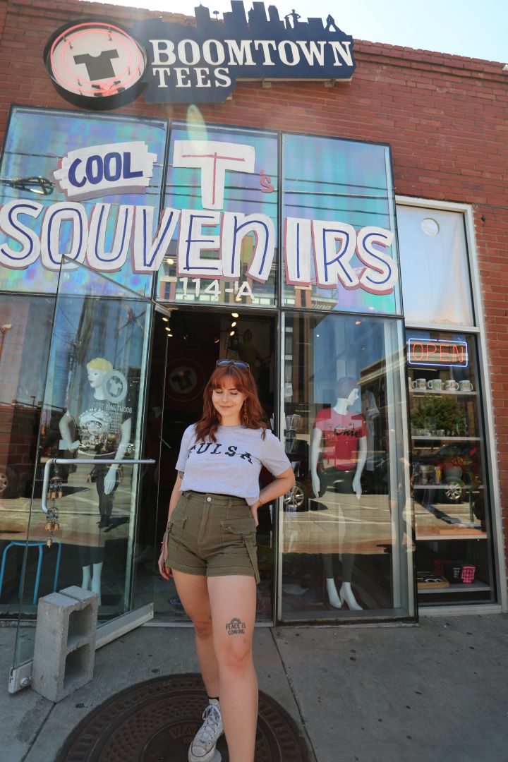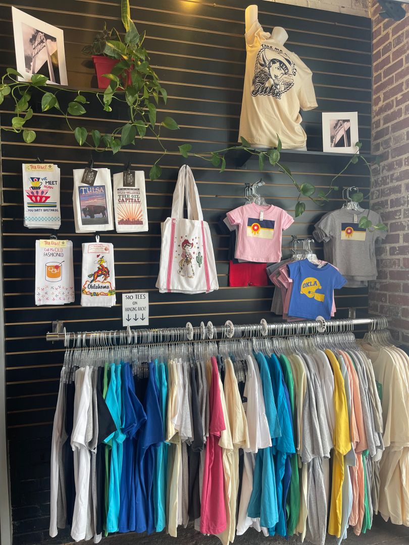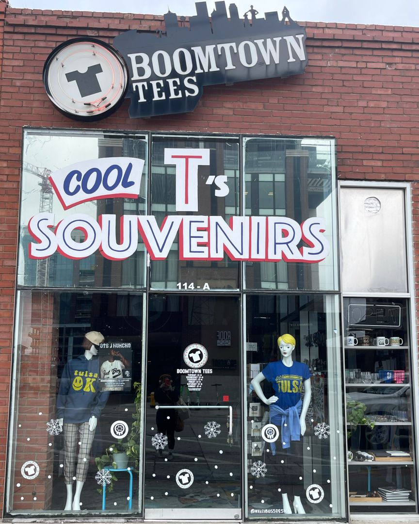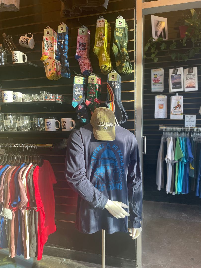 I love Tulsa, I was born and raised here. Getting to work with the people of Tulsa in the unique way we do is always exciting. Boomtown Tees is, in it’s front-facing business, a souvenir shop! Tulsa and Oklahoma has a long history and we love to celebrate it with fun, quirky t-shirts, mugs, hats, and really anything else you’d imagine is in a souvenir shop. I think this is the easy part of the business, mostly because for me, customer service comes easy. I thoroughly enjoy helping out a fellow Tulsan or tourist! I love to hear people’s ideas for t-shirt designs and being able to create those.