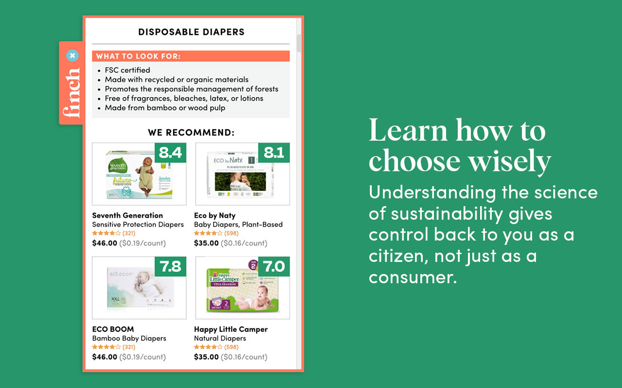 Finch decodes products’ environmental impacts to help consumers make better purchasing decisions. Finch allows consumers to digest relevant information and make decisions that improve their impact on the planet. I’m proud of Finch because we meet people where they are and don’t shame anyone for not being 100% “sustainable,” whatever that means. A lot of my competitors are alienating and make people feel guilty about their actions, which is the most effective way to drive people in the opposite direction. Finch encourages people to do what they can and take small steps. I got to where I am by taking risks and believing in myself and my team.