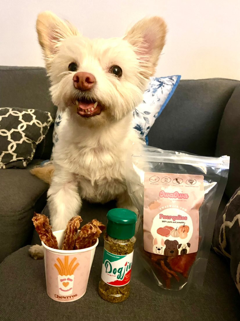 I’m obsessed with my dogs- they’re my kids! which are the biggest inspiration for starting Owa Owa. to give them the best life possible, I became a certified canine nutritionist. That’s when my treat business was born! Owa Owa’s treats are all meat based, just like nature intended, and come in adorable, nostalgic packaging inspired by my Mexican roots.