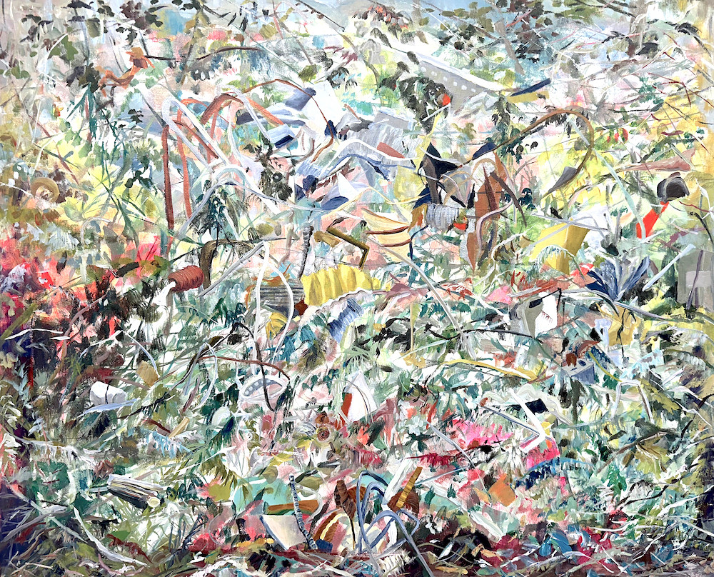 I took the photos. The artwork are all painted by me. They are recent works that engages in the global conversation about our endangered forests and the journey of single-use plastics on land, air and water.