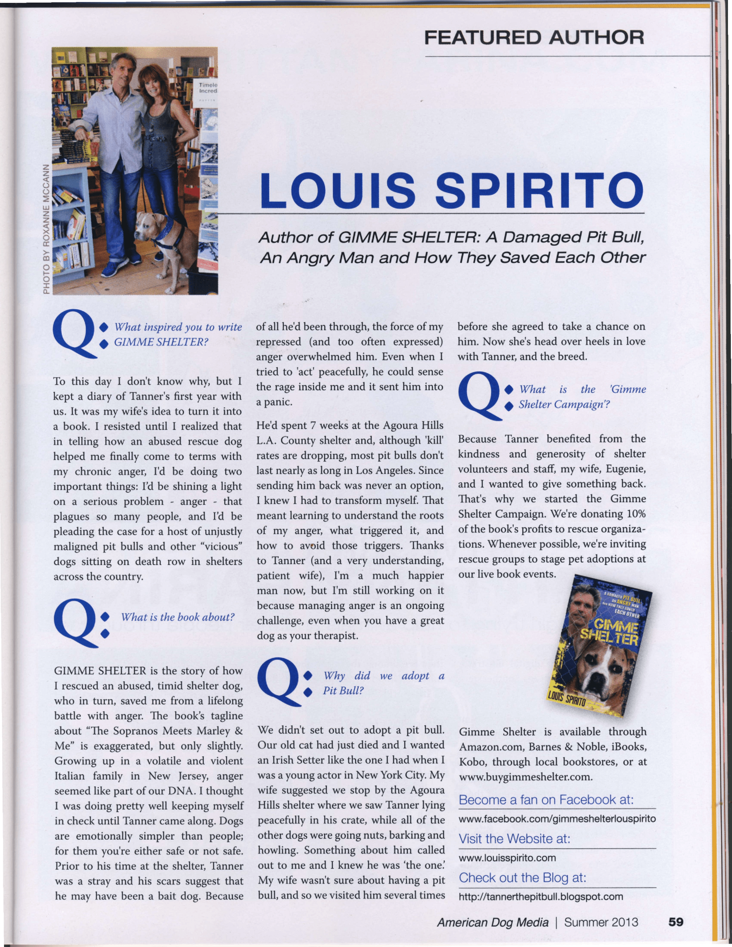 As a writer, you hope that your work will make a positive difference in your community and the larger world. Sharing the stories of underdogs who triumphed over long odds – boxer Billy Miske, judo pioneer and Olympic coach Rusty Kanokogi are two examples – offers inspiration to anyone facing a difficult situation, professional or personal. My nonfiction book, “Gimme Shelter”, shone a spotlight on an important, often overlooked issue – how to identify and deal with chronic anger. It also raised money for animal charities and offered an inside look at the challenges and immeasurable joys of adopting a rescue dog, as well as advocating for pit bulls, an amazing breed that too often gets a bum rap.