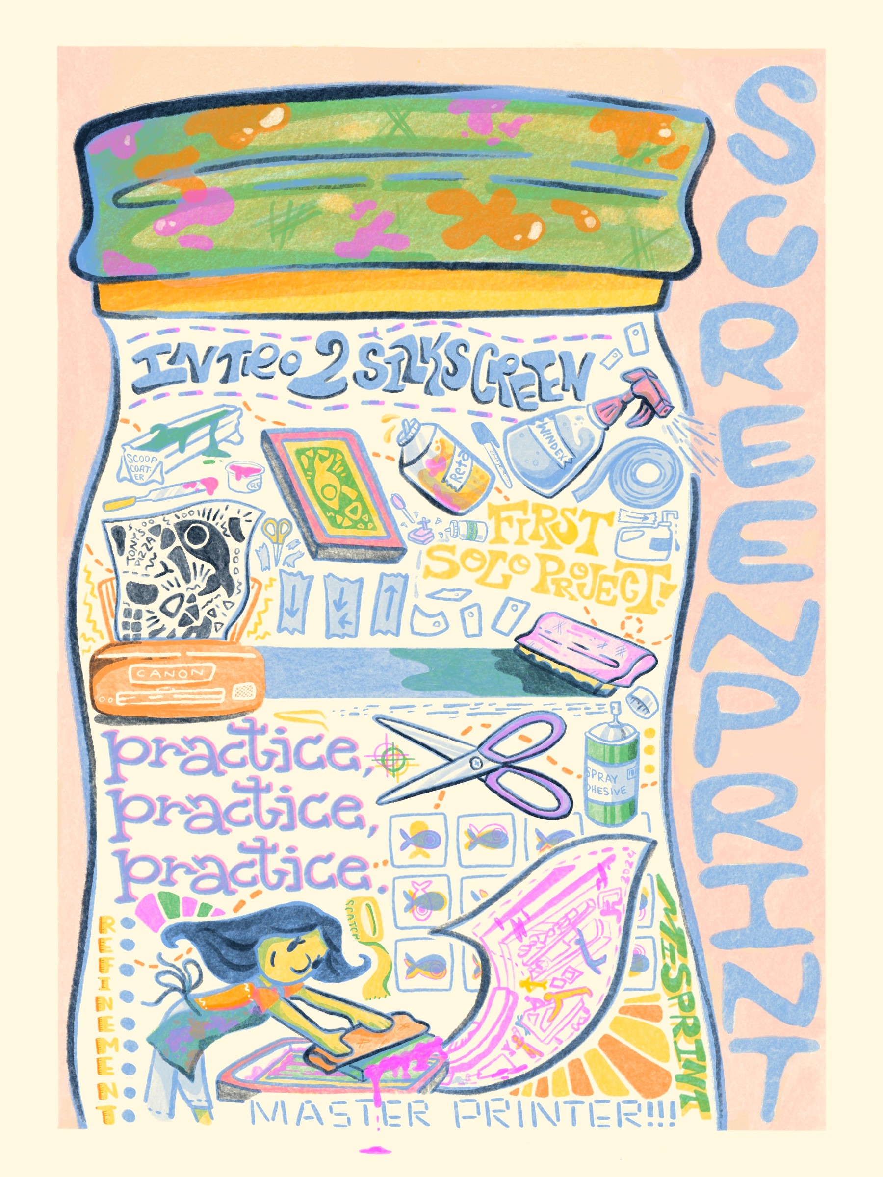 I am very excited to be graduating this Spring 2025 semester from California State University of Northridge with my BA in Illustration and Printmaking. Looking forward, I would love to own a public and personal screen printing studio where I will teach workshops, create public art, and connect with my community.