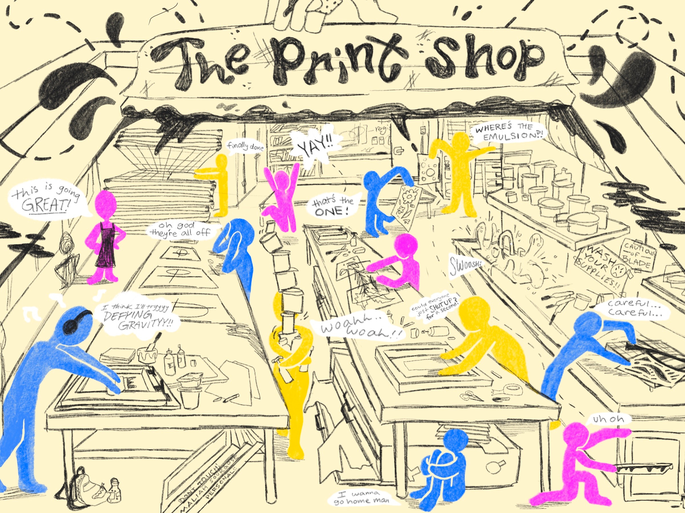 Viewing the printmaking industry as an outsider, there is often an overlook of the process and labor that entail within the work. When vending at markets, I have had conversations with people discussing the multiple steps taken to complete the final product. To most people, my work is an illustration that was automatically printed out. However most, if not all, of my work was screen printed by me personally. Every layer, color, and alignment is done by hand which a lot of outsiders are not aware of.