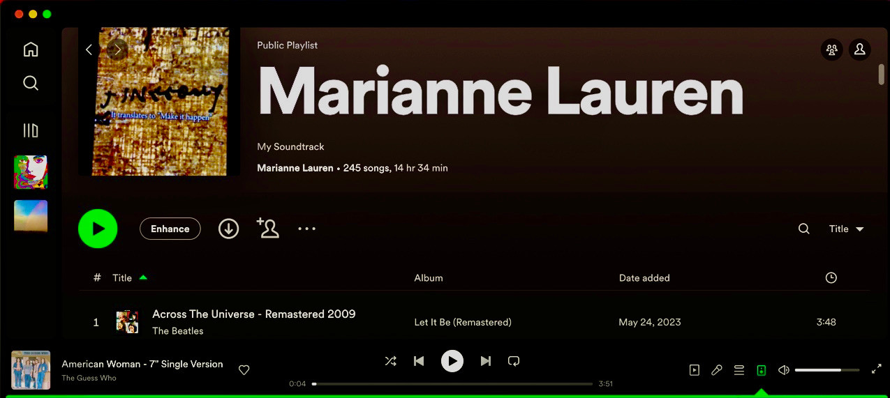 “Born in Los Angeles in a hospital near Hollywood, Marianne Lauren swears she saw the Hollywood sign from the window as her mother held her in her arms. She grew up surrounded by singers, musicians, actors, poets, and artists. At an early age, she decided she would be a performer. Her mother, Ava, a singer and dancer, encouraged and supported her big dreams.