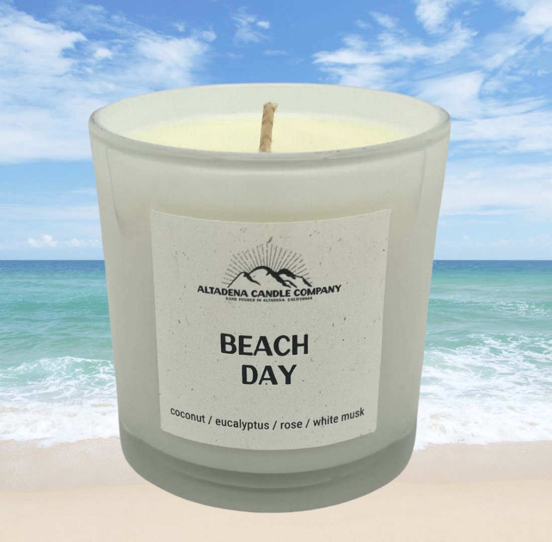 My background is in public education, first as a teacher at Pali High in the Palisades and then as an assistant principal in San Fernando. I am not a business-minded person, but I left my career after my husband, Edwin, passed away in 2021 to focus on raising my son. I already had my yoga teaching certificate and started teaching yoga and holding women’s retreats at our home in Altadena. For a winter solstice event I wanted to gift a candle as a symbol of light emerging in the darkness. I began to experiment with candle making, and although I didn’t figure out my solstice candle, I did continue teaching myself how to make candles. A dear friend from Altadena named Pauly who himself owns a small business and loves candles really encouraged me to start a candle business. Though I felt a lot of anxiety about the business side of things, I moved forward with the hopes that this could be a way to work from home while caring for my son, and also to make connections in my Altadena community. Incidentally, Pauly is a surfer and he asked me to make a candle that smells like his surf wax. The Beach Day candle is the result and is by far our my seller.