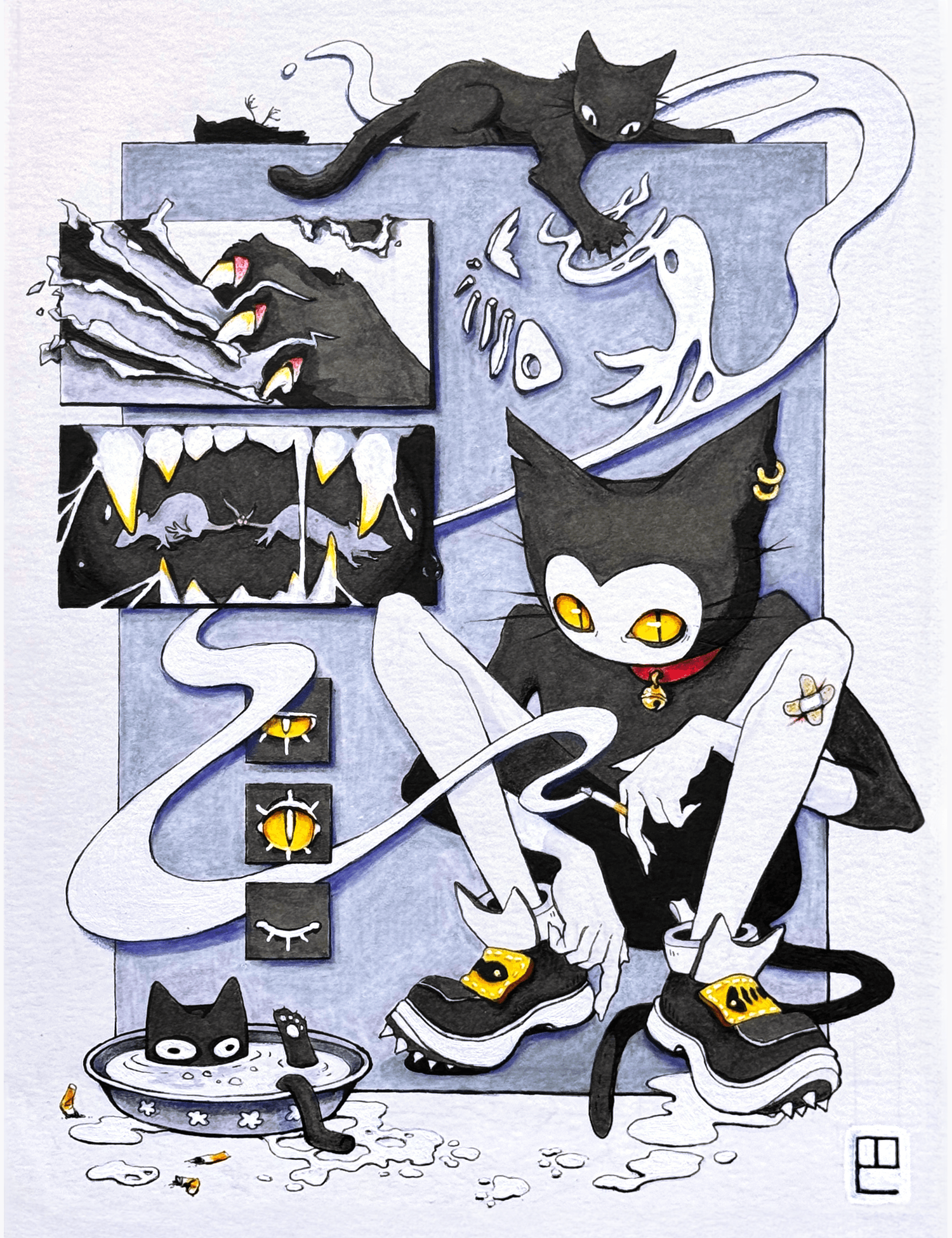 I’ve had the opportunity to try my hand at murals, album covers, book illustrations, installations, prop design, social media content, fine art, sculpture, custom clothing, and everything in between. I’m excited to continue to grow my practice in every direction I possibly can, and strive to maintain both a professional and personal creative practice with gallery work.