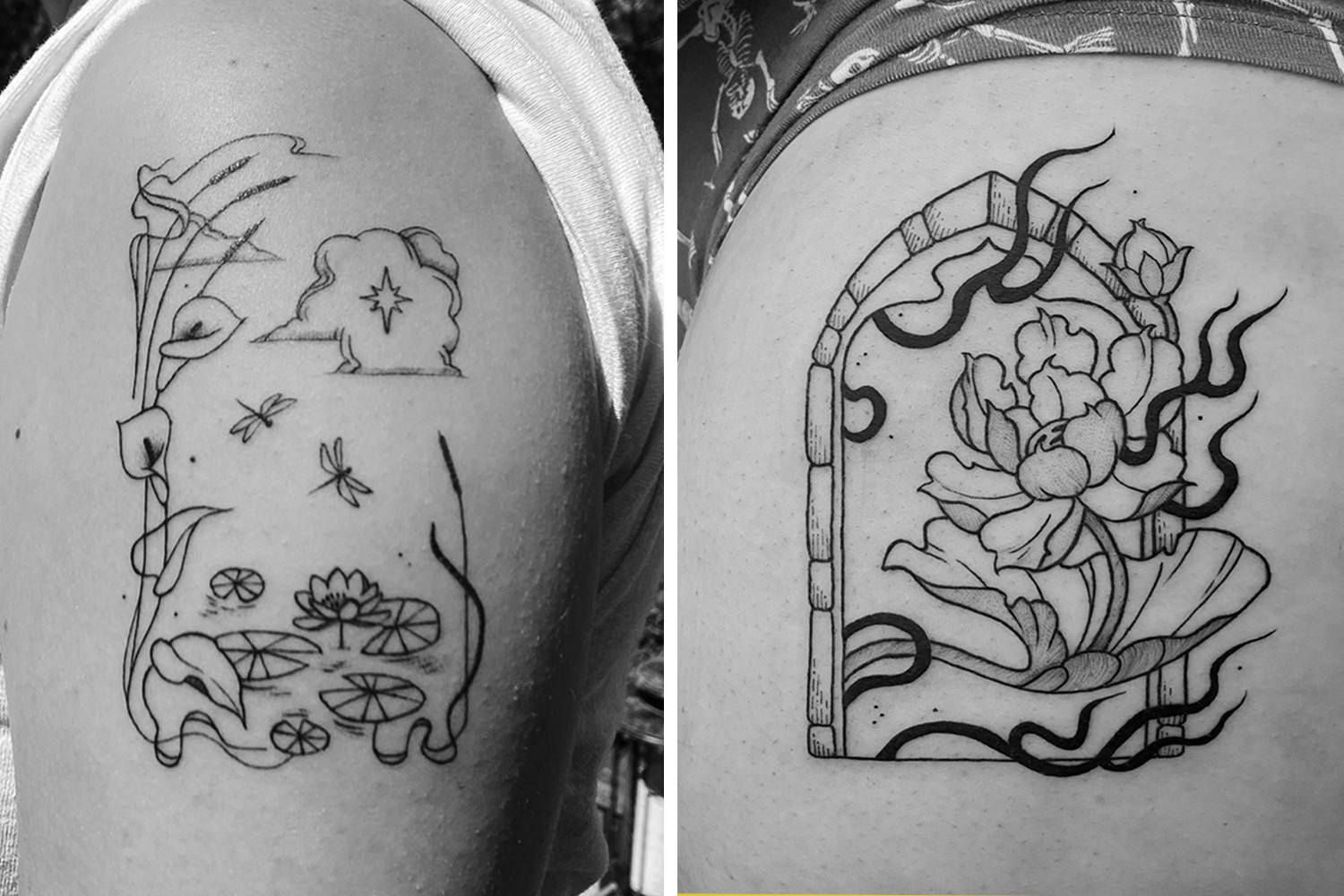 I am a tattoo artist primarily specializing in blackwork, which is a broad label tattooers use for pieces done only in black and gray inks and shading techniques. As such, a lot of my work (even the pieces not on skin) tend to be monochromatic and rely heavily on ink. I’m really inspired by a lot of different, traditional movements within tattoo history, but my work is more feminine and leans on more contemporary styles.