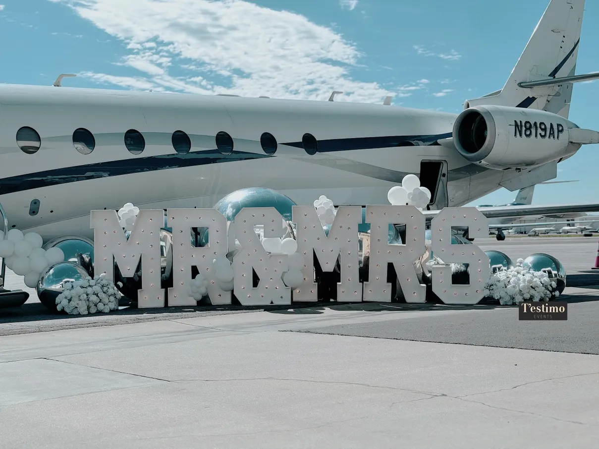 T’estimo Events specialize in luxury event decorations, some of our most popular services, includes 4-foot marquee letters, balloons, and Big Shiny balls.