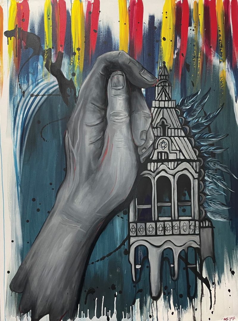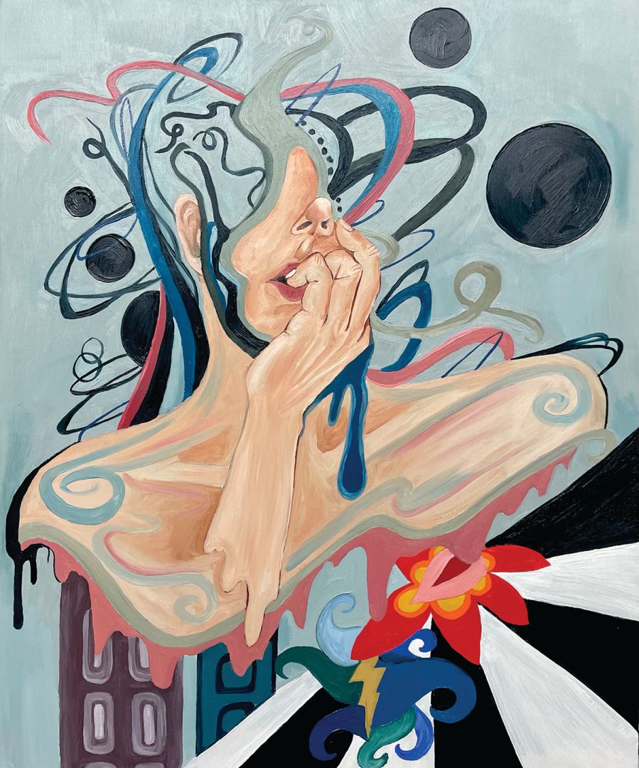 I’m a figurative surrealist oil painter, who dabbles in street art and music. I have always been deeply creative and vacillated between art and music. I was a classically-trained trumpet player and transitioned to guitar later. At one point, I was torn between pursuing art or music as a profession, but decided my skills as an artist exceeded my musicianship. I would describe my music as a creative outlet from my main creative outlet. My daily routine involves drawing, painting and playing guitar. A successful day hits all those marks.