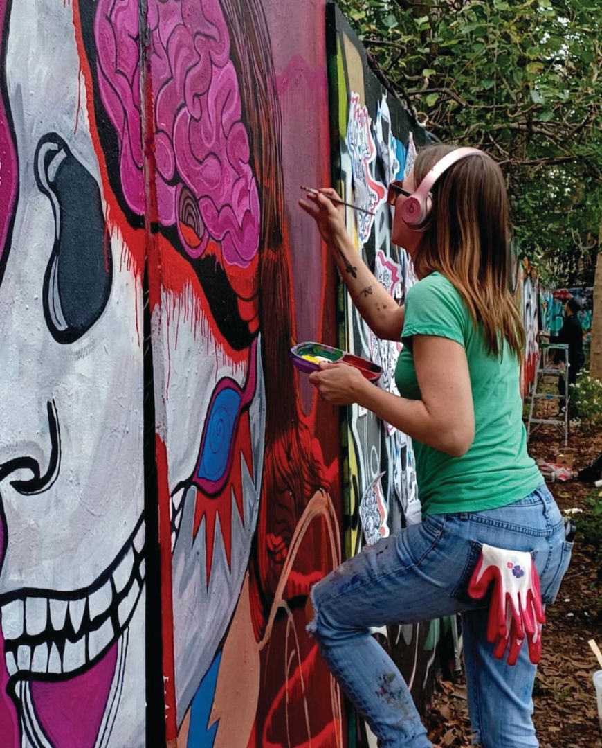 Street art fell into my lap in an organic way. Due to the gritty and bold art I make, it leant itself to exhibitions within the street art community in New York City. I often describe my work as bridging the gap between fine art and street art. Through these connections, I have created a couple of solo murals in New York City and a handful of collaborative ones. I also wheat paste and post stickers as a means to advertise my art, guerrilla-style.