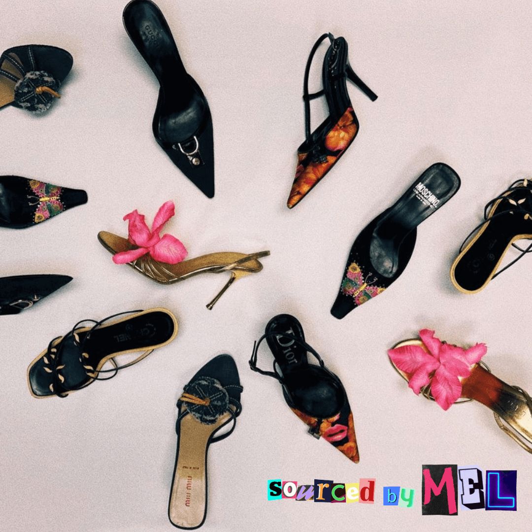I firmly believe that when it comes to shopping, less is more. I strive to embody this principle daily, preferring that my clients fall in love with a pair of vintage heels or an off-the-runway dress rather than aiming to sell out my entire store. This mindset not only distinguishes my business from others but also helps mitigate its social and environmental footprint. Although the tagline for sourced by Mel is “thx, it’s my shopping addiction,” I strive to counteract the addictive nature of shopping by encouraging purchases of only items you absolutely love!
