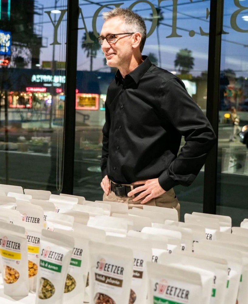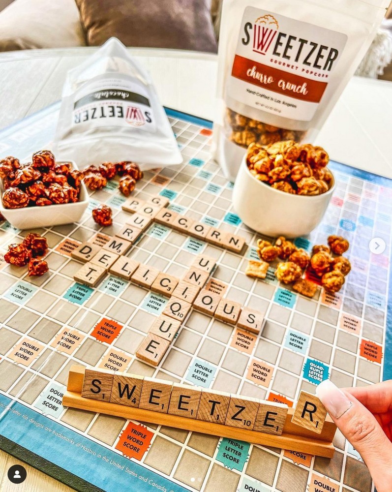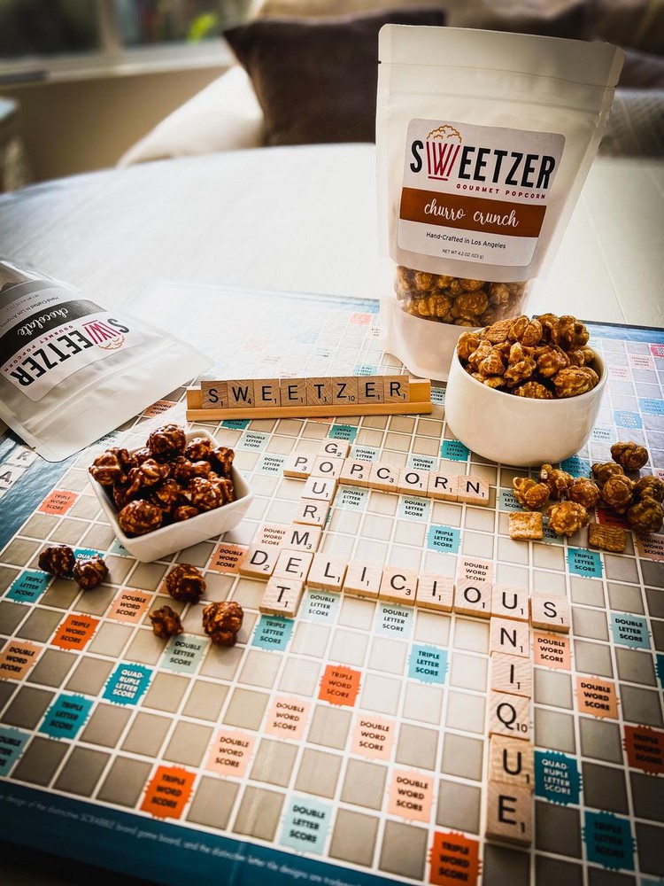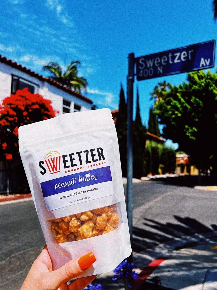 Sweetzer Gourmet Popcorn is a passion project that’s the product of the pandemic and wanting to continue to get together with best friends. For years, my family had a standing pizza and game night with our closest friends at our home on, yes, Sweetzer Avenue. Due to the pandemic, the gathering relocated outdoors and became pizza and movie night. Since one of the things I love about going to the movies is filling up a giant tub of popcorn, we would stop our movie at the halfway point in order to microwave a few bags and grab some candy.