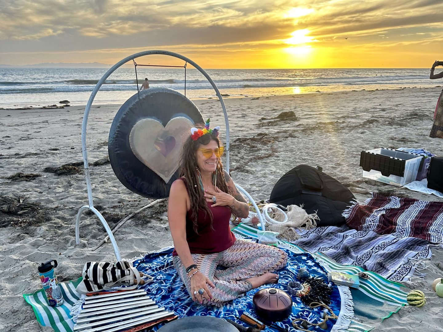 Ventura offers so many diverse things to do. I love taking walks to the beach, on the beach and promenade, in the hills, Botanic Gardens and around town. Some of my favorite places to eat and drink are Rumfish y Vino, Lure, Fluid State, Spencer McKenzies, Immigrant Son, Urbane Cafe and Beachhouse Tacos. Sunset views from the cross at Grant Park is a must see. The pier, when open, is another spot to catch awesome views. Day trips to the Channel Islands for hiking, a picnic and nature is always a favorite of mine. Cemetery Memorial Park is another excellent spot for ocean views, picnics and monthly Sunset Sound Bathes affiliated by me. The Ventura harbor has fun shops, yummy restaurants and activities for the whole family. And you can’t go wrong with the shops and restaurants in downtown and midtown Ventura as well. Most likely we would also drive north on the PCH to Santa Barbara and/or south to Malibu. Both are beautiful coastlines with incredible views.
