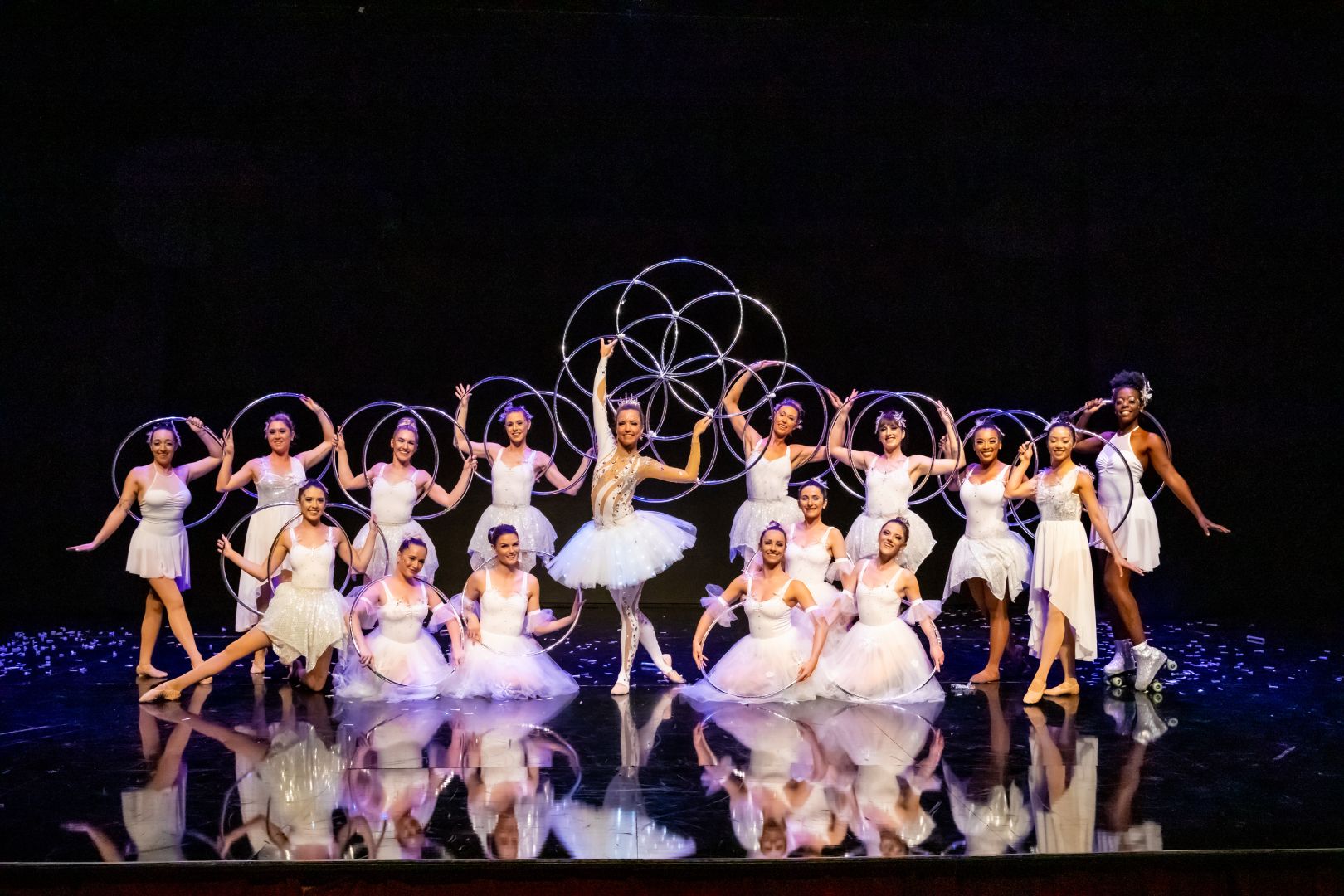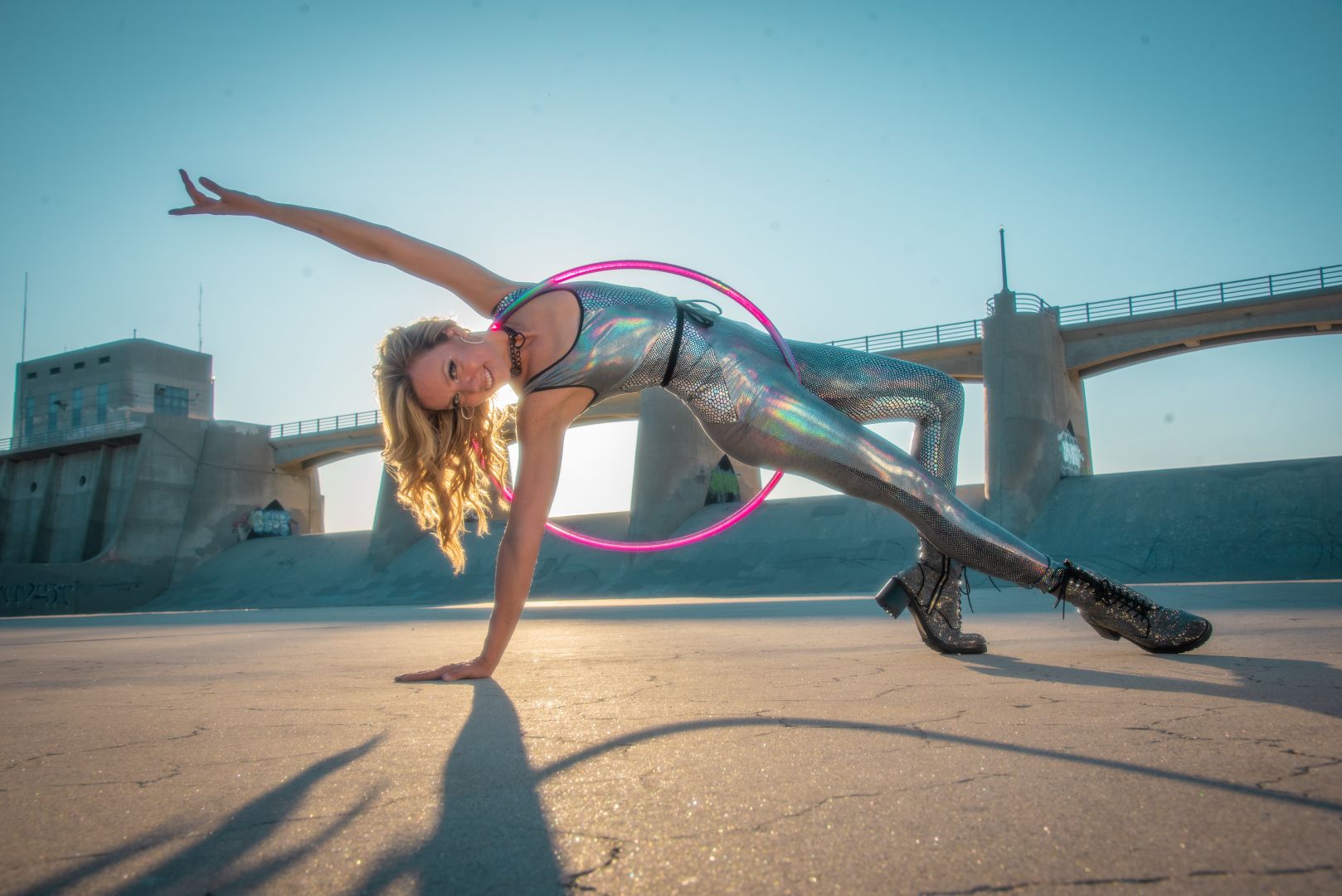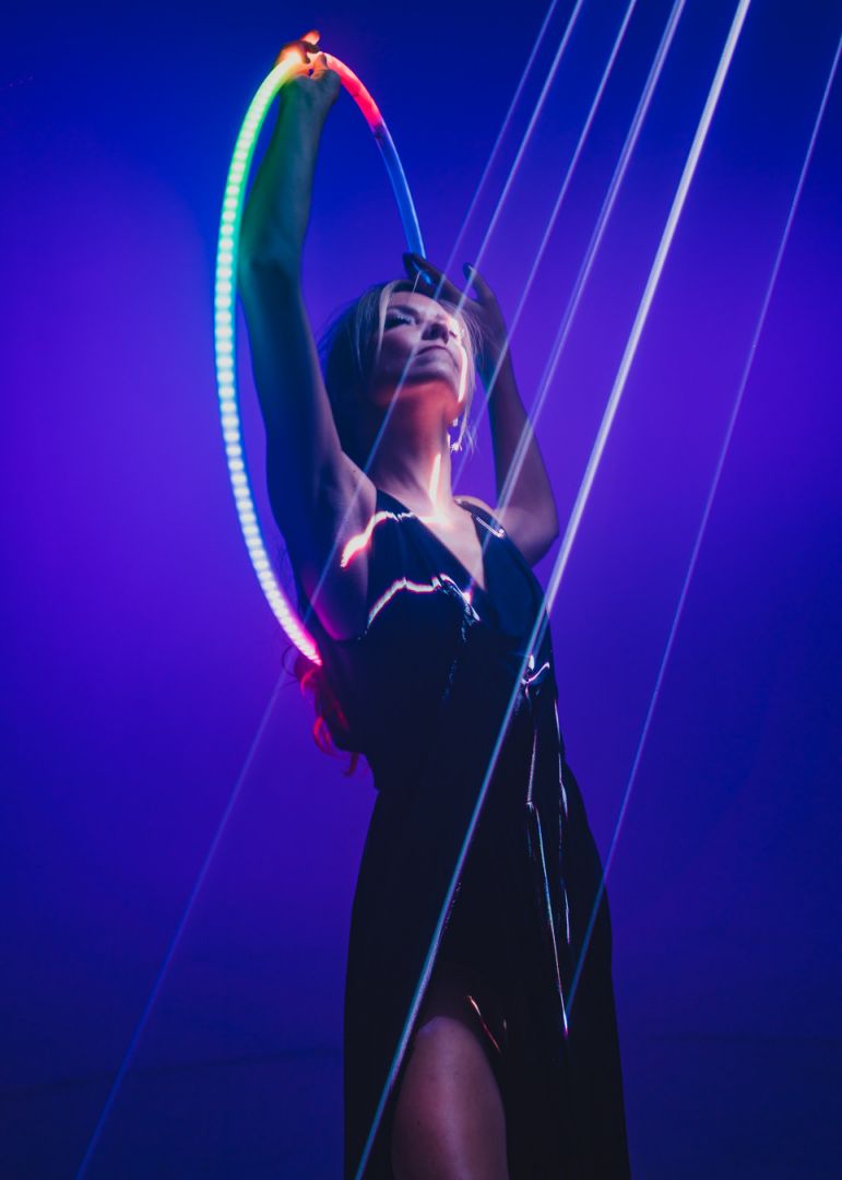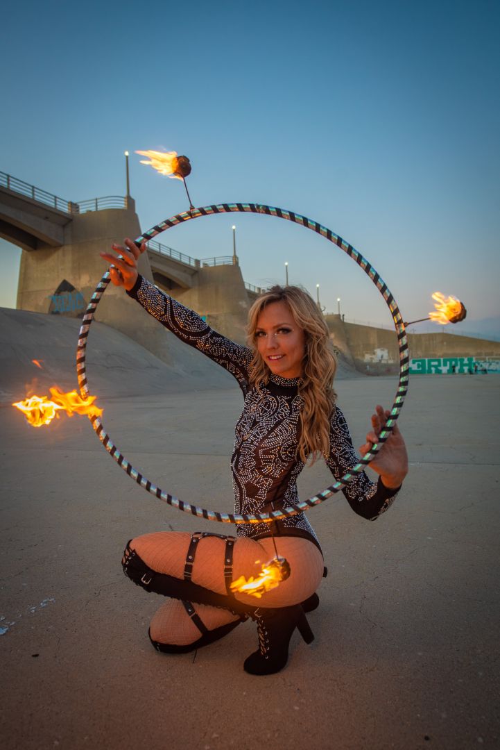 Because of my background in filmmaking, I was easily able to conceptualize and create high quality hoop videos as a way to express myself. These videos focused on hoop artistry and storytelling more than hoop tricks, and because of their unique nature I made a name for myself in the hoop dance community. Originality is extremely important to me, and so over the years I have strived to constantly make each creative project something that has never been done before. This has lead to creating one of the first well known hoop performance groups “Hooptown Hotties”, directing many music videos featuring hooping, coining the term “Hoopography” and teaching hoop choreo globally, creating my own touring event “Hoop X’ and most recently – directing the first flow arts live Nutcracker Production for Lumia Dance Company and co-directing the first flow arts documentary for Oculus TV with Daily Planet Productions.